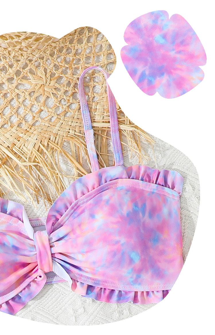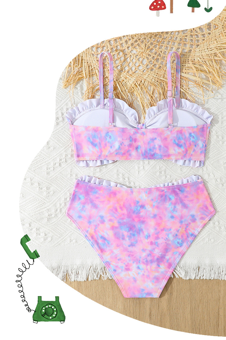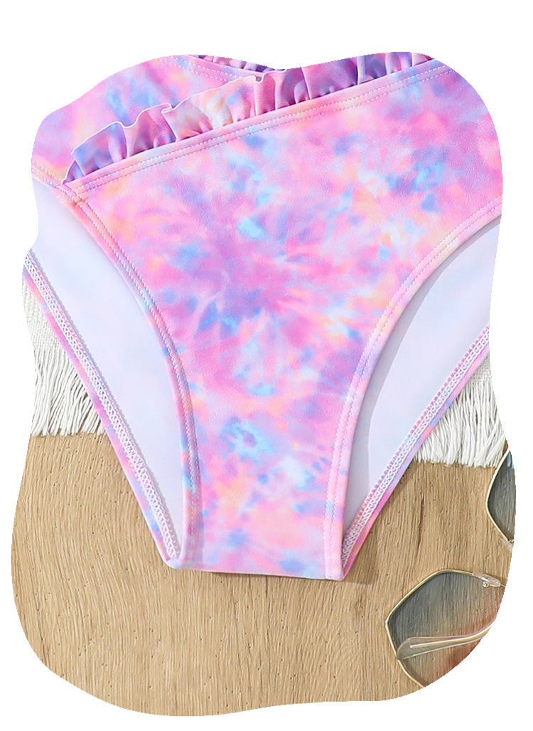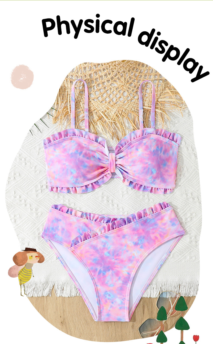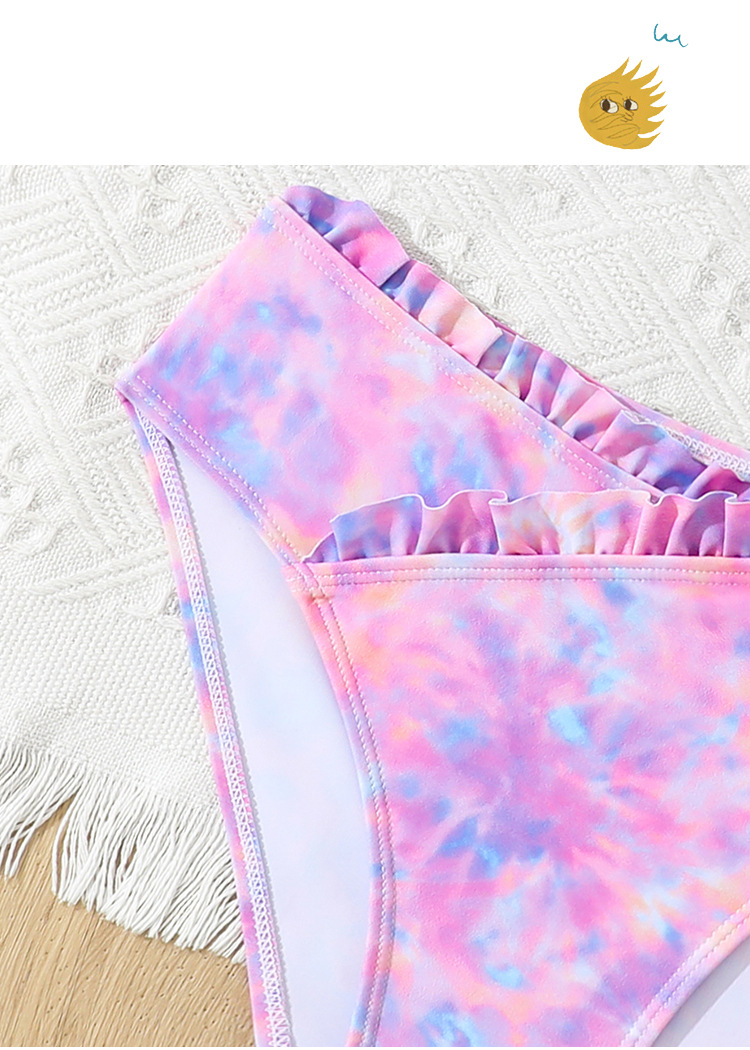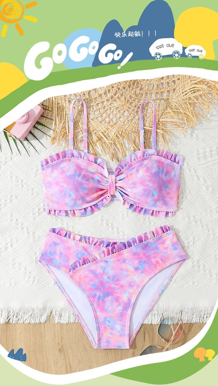 2025 새로운 소녀 분할 수영복 어린이 2 조각 슬링 이어 엣지 타이 다이 수영복 주니어, 중, 빅 키즈 학생
