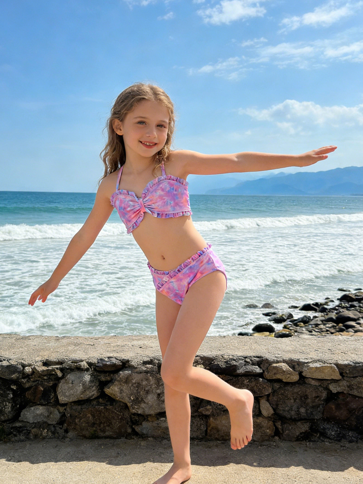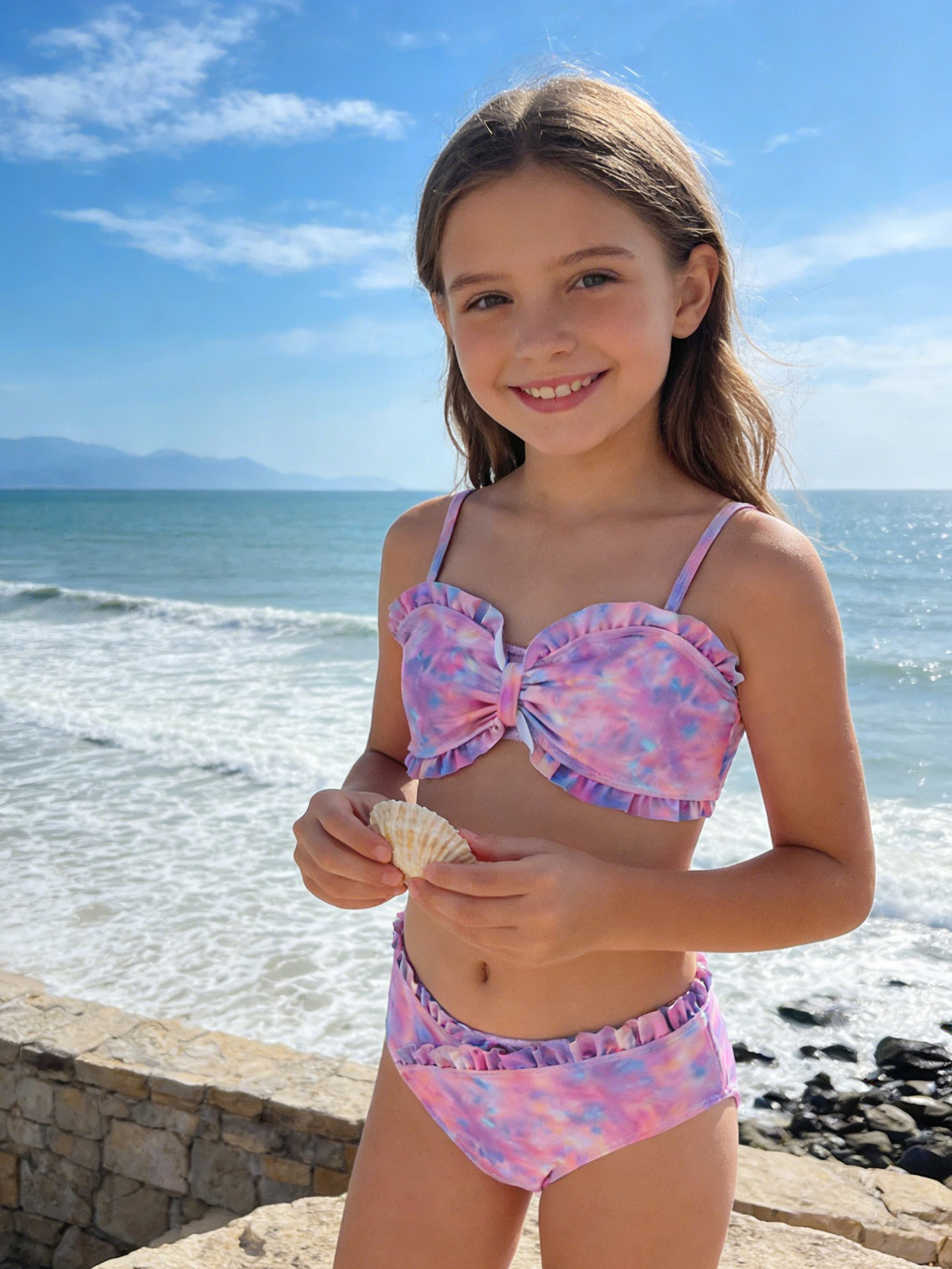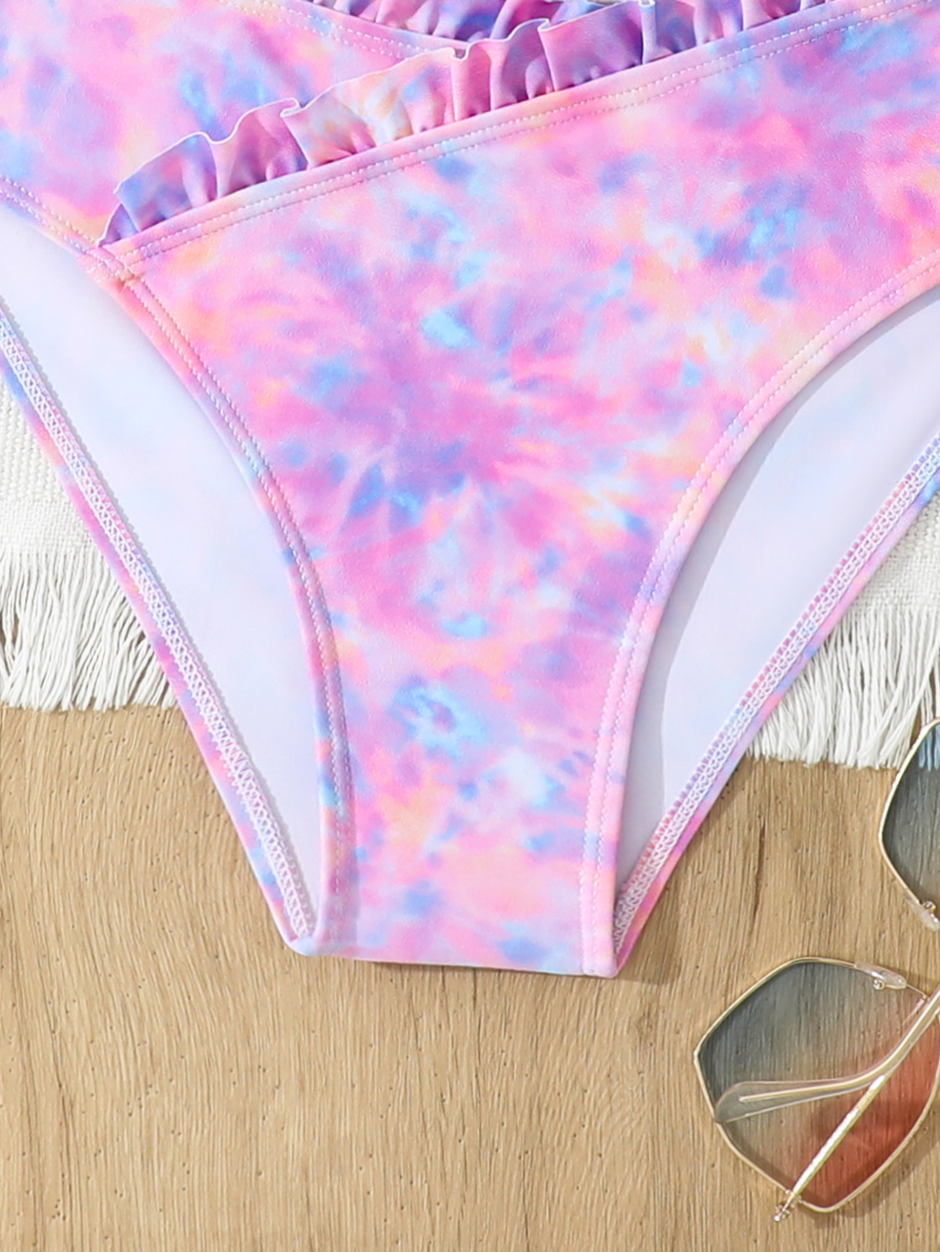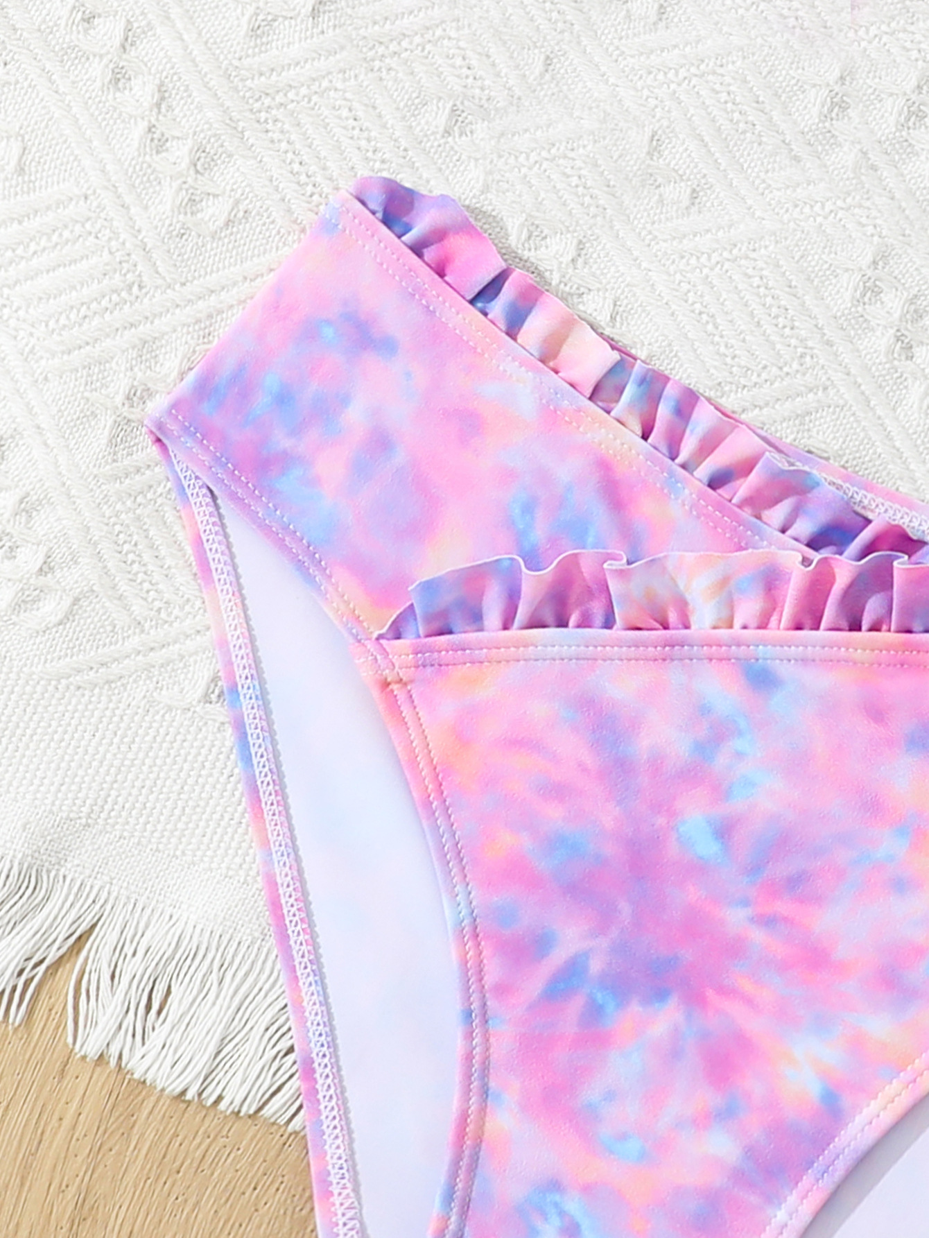 2025 새로운 소녀 분할 수영복 어린이 2 조각 슬링 이어 엣지 타이 다이 수영복 주니어, 중, 빅 키즈 학생