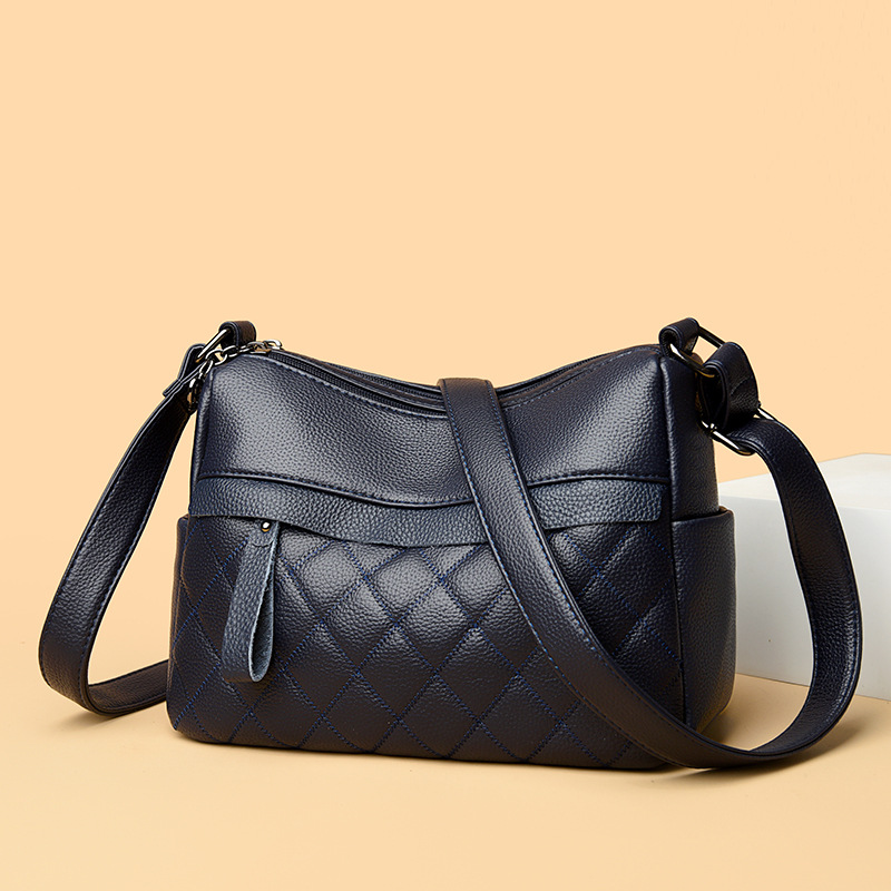 2025 새로운 패션 캐주얼 소프트 가죽 숄더백 메신저 백 중년 및 노인 여성 수 놓은 마름모 여성 가방 도매스토어 가기