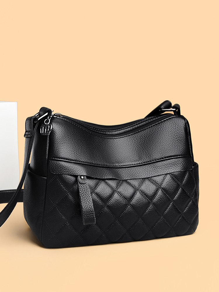 2025 새로운 패션 캐주얼 소프트 가죽 숄더백 메신저 백 중년 및 노인 여성 수 놓은 마름모 여성 가방 도매
