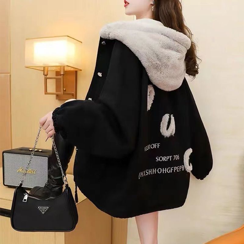 기모 재킷 여성 캠퍼스 스타일 가짜 양고기 양털 데님 재킷 세련된 코튼 패딩 재킷 스몰 사이즈 따뜻함
