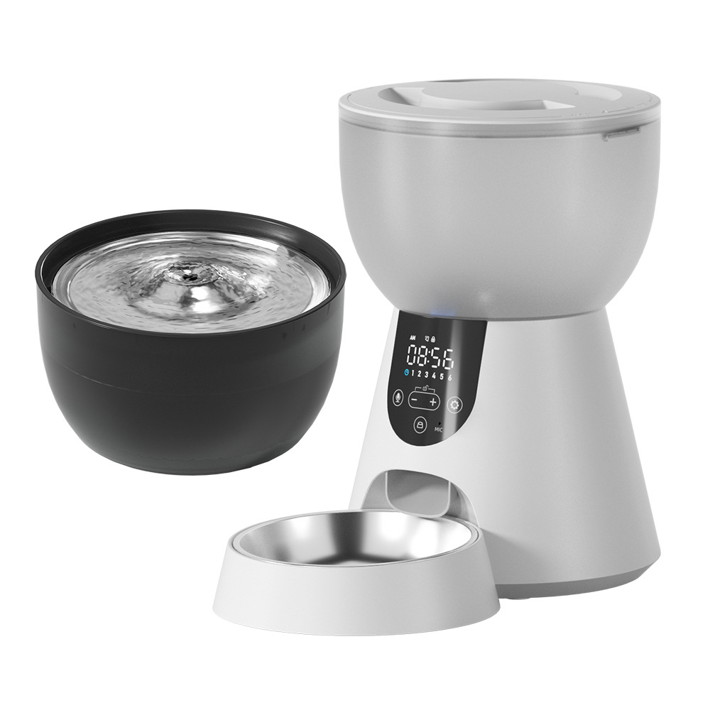 고양이와 개가있는 국경 간 5G 비디오 스마트 애완 동물 먹이 세트 자동 스테인리스 물 디스펜서 4L 피더 3L