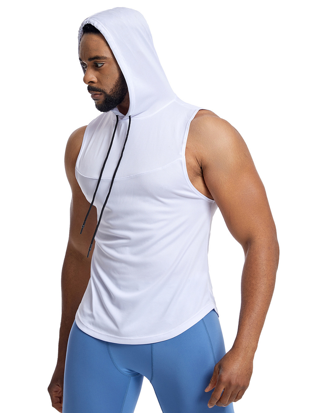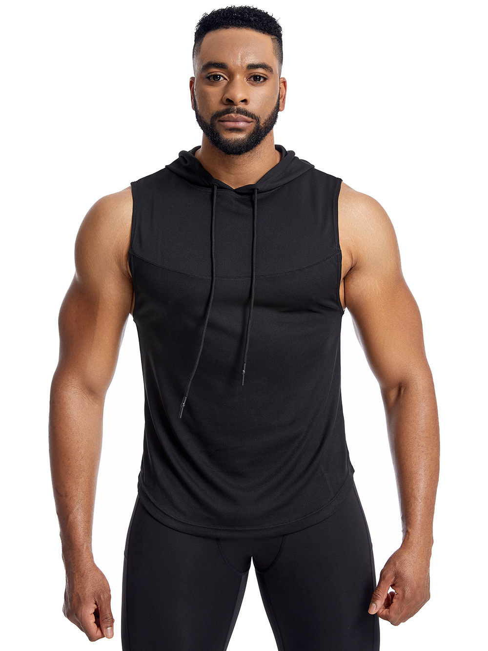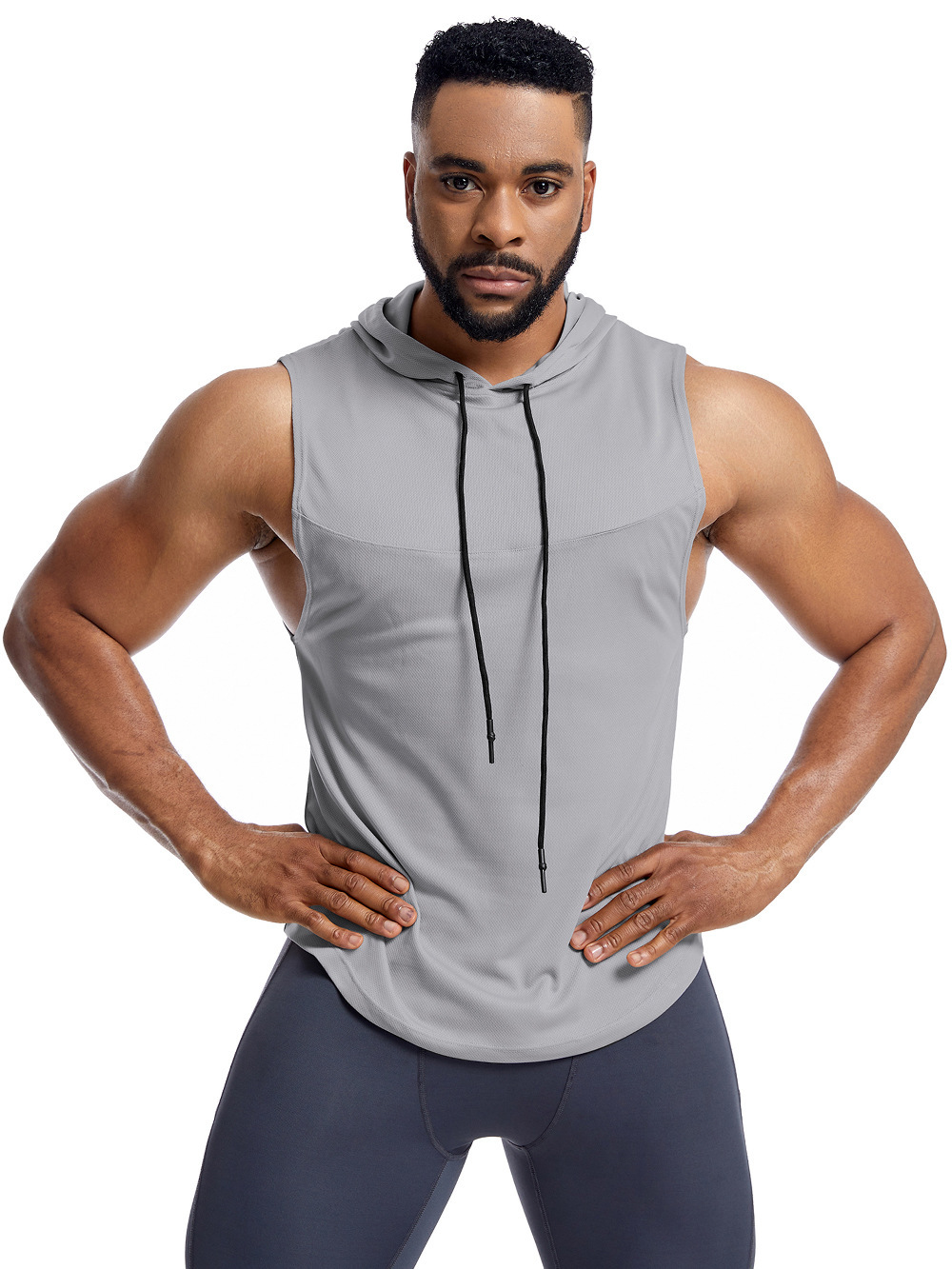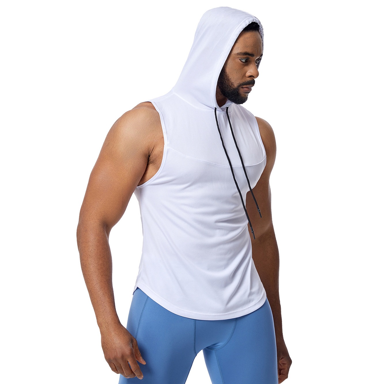 허리 코트 후드 민소매 피트니스 탑 남자 농구 꽉 옷 스트레치 조끼 훈련 메쉬 빠른 건조 옷