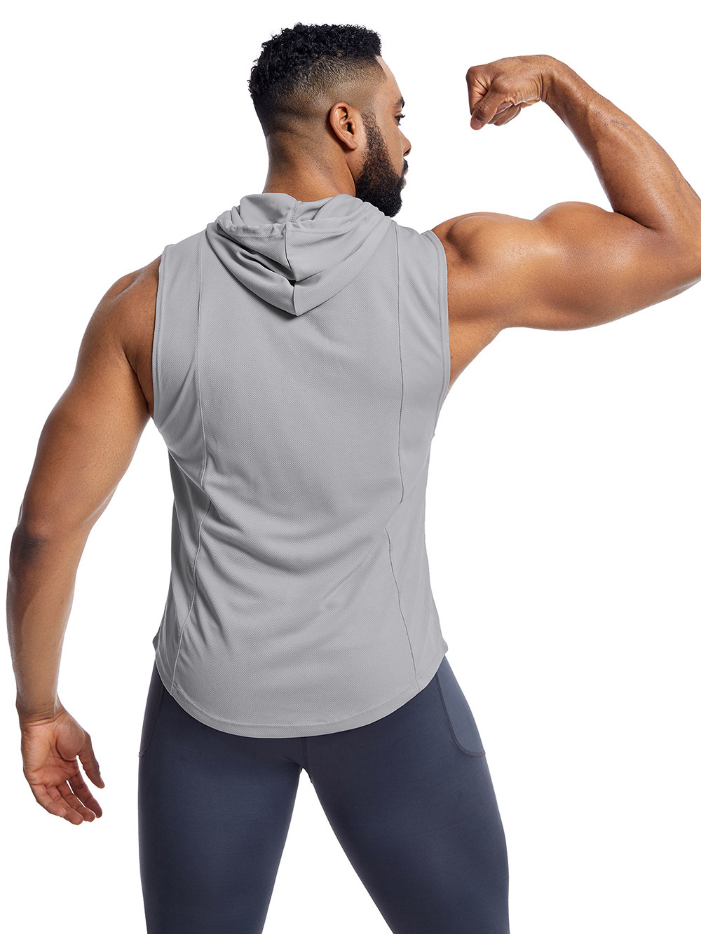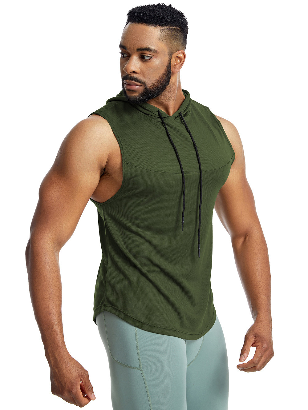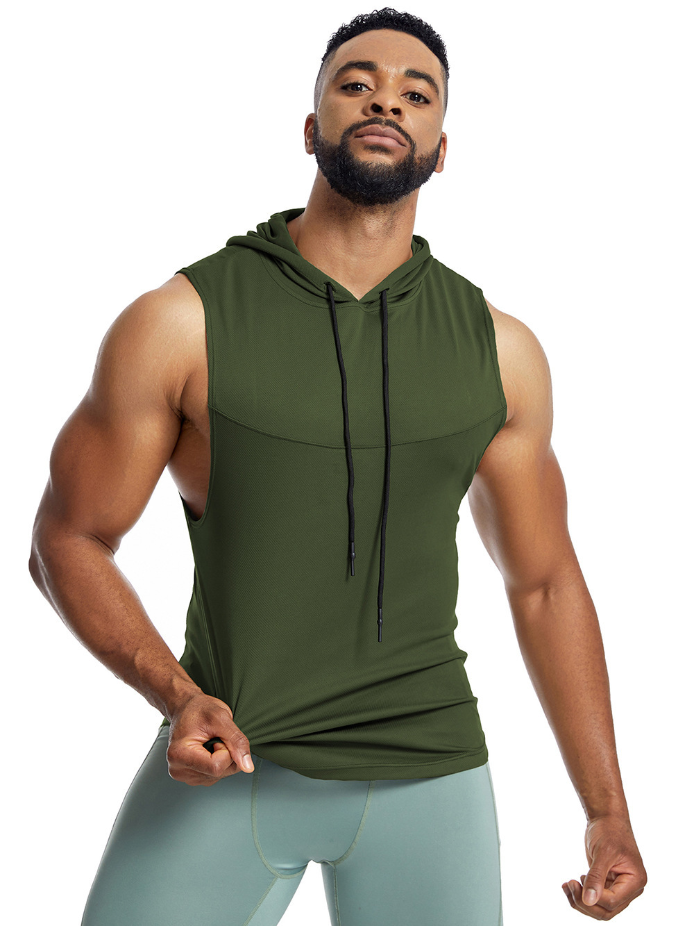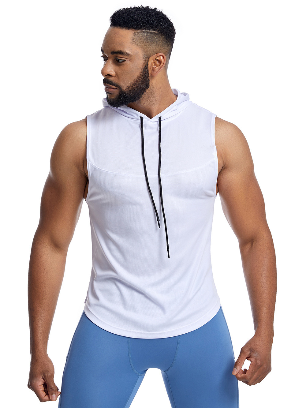 허리 코트 후드 민소매 피트니스 탑 남자 농구 꽉 옷 스트레치 조끼 훈련 메쉬 빠른 건조 옷