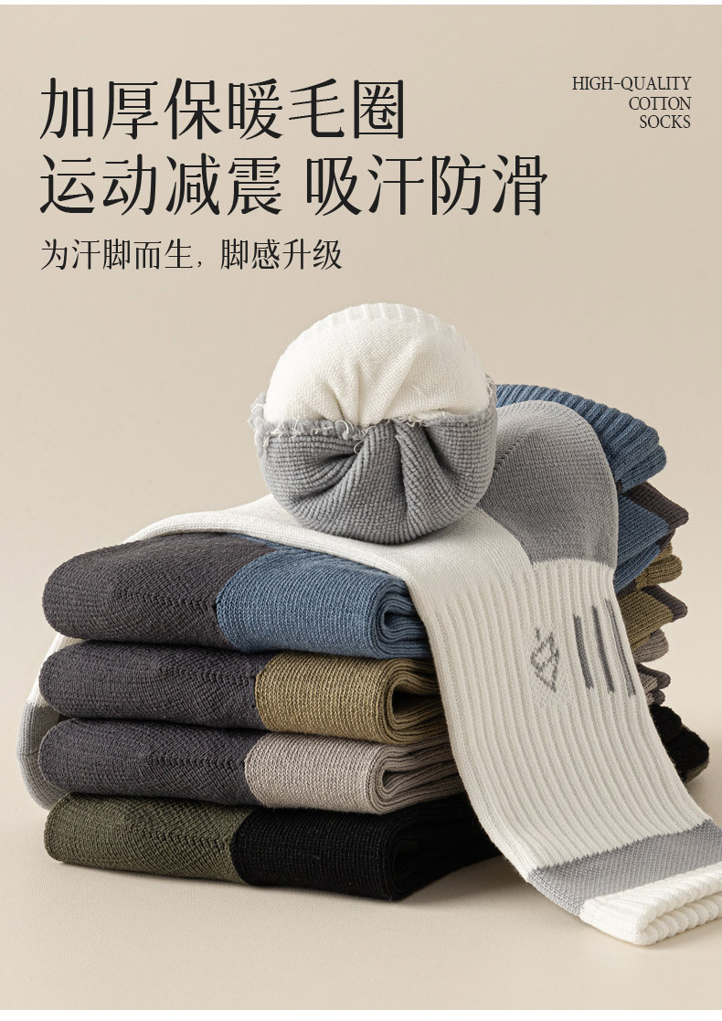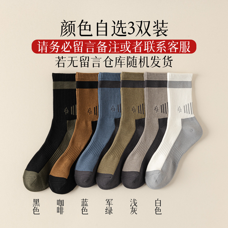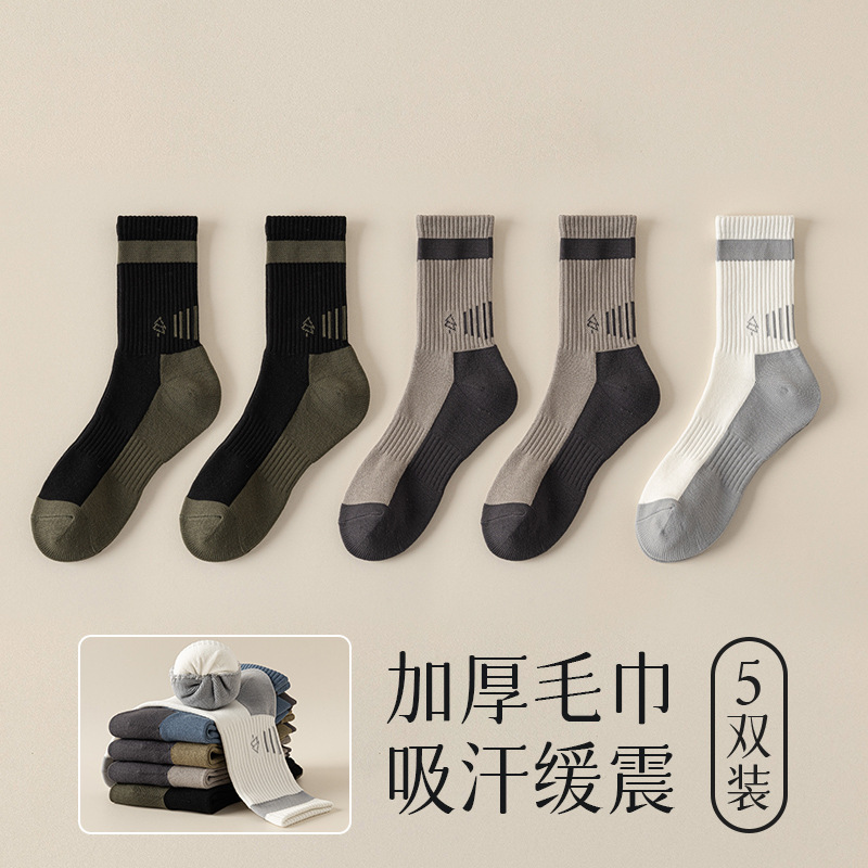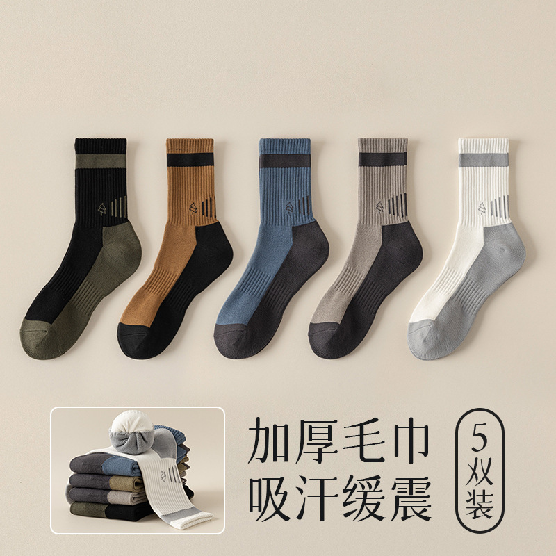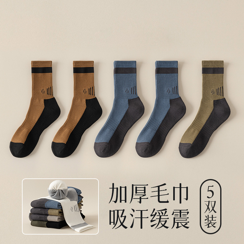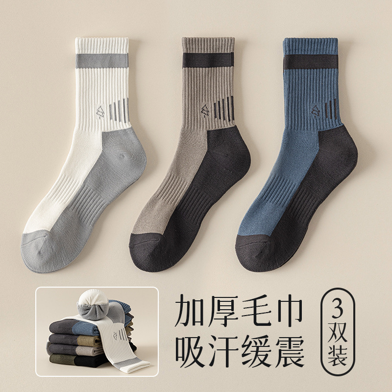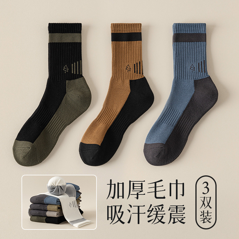 양말 남자 수건 바닥 땀 흡수 스포츠 슬로우 쇼크 높은 고무 보호 산 오르기 가을과 겨울 대비 컬러 미드 양말스토어 가기
