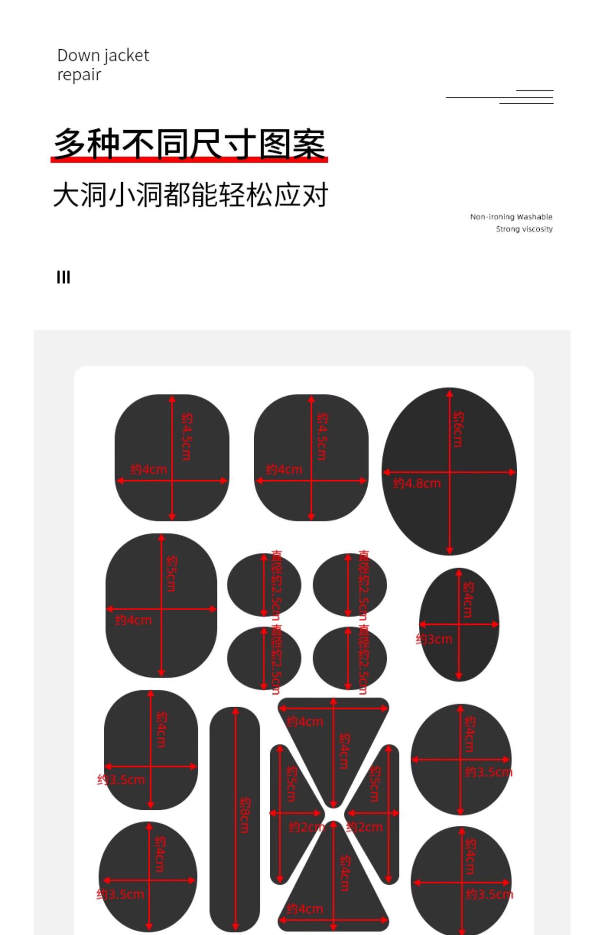 다운 재킷 패치 스티커 자체 접착 비 표시 천 스티커 남성 및 여성 의류 패치 스티커 자체 접착 비 봉제 비 표시 의류 수리 데칼