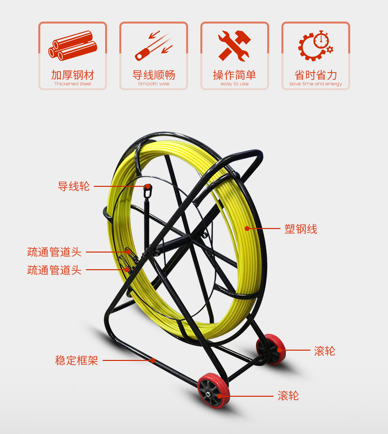 Tiantai Hualian 새로운 유리 섬유 강화 플라스틱 스레드 숨겨진 파이프 풀 와이어 전기 특수 천공기 파이프 준설 가이드를 통해