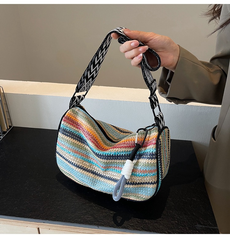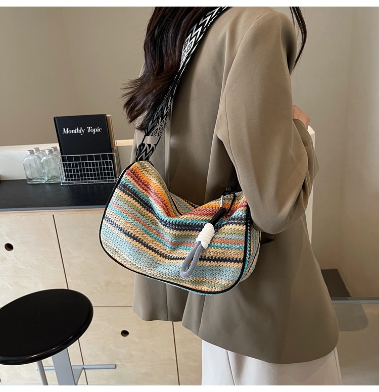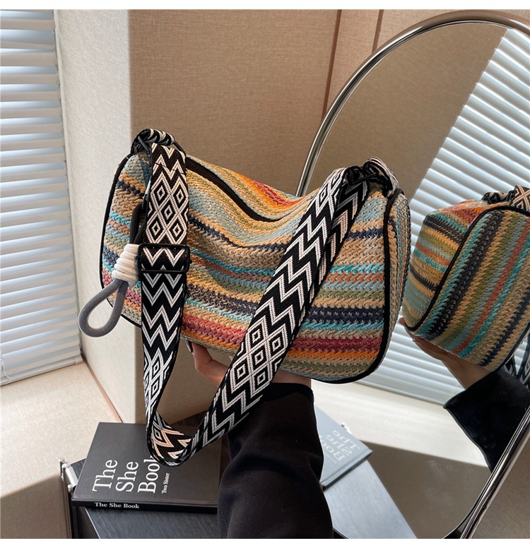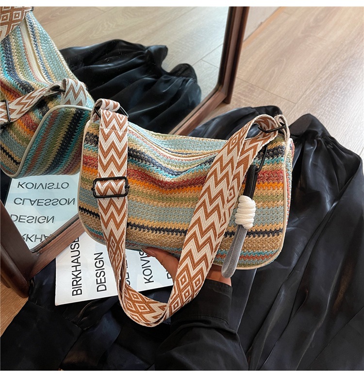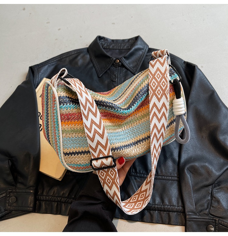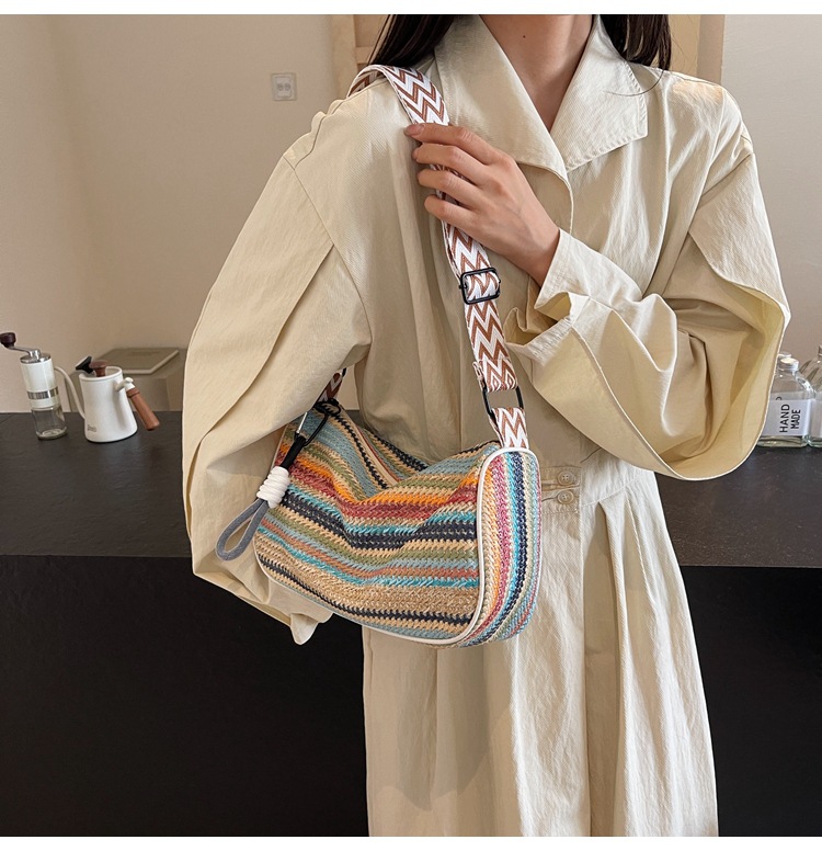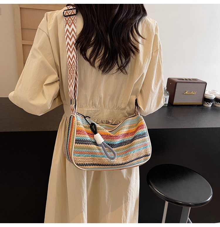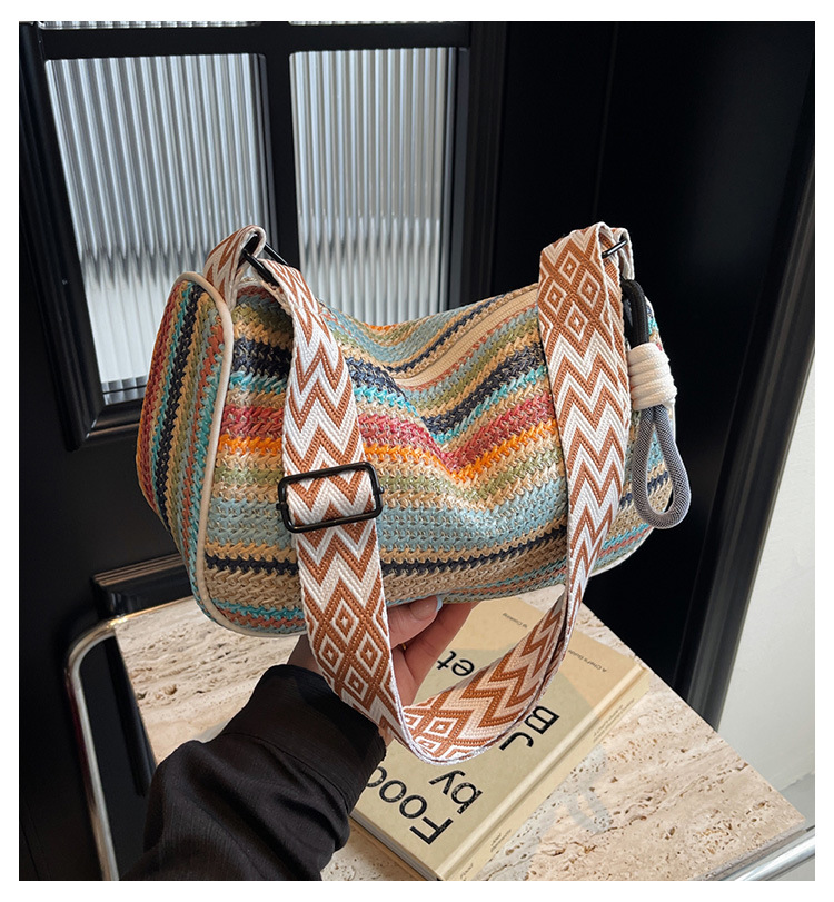 수제 짠 가방 여성 2025 새로운 유행 여름 크로스 바디 가방 인기있는 해변 휴가 어깨 가방 밀짚 짠 가방