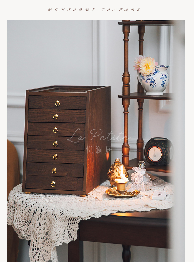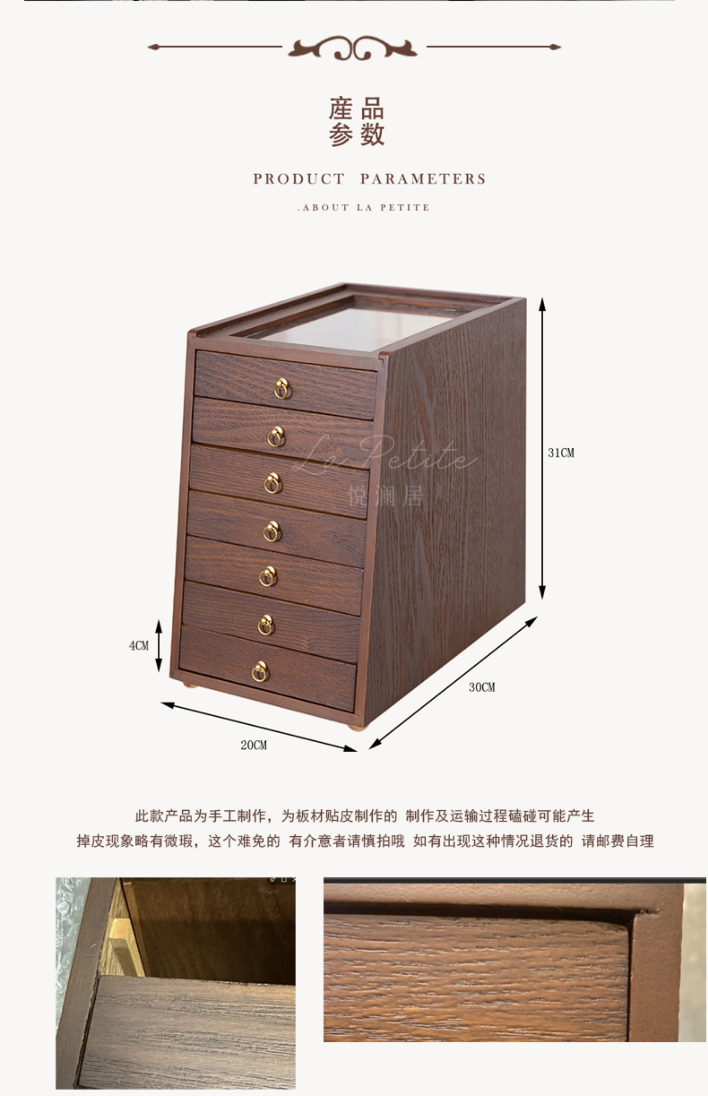 Tiantai Hualian Yuelanju 빈티지 보석 저장 상자 인터넷 유명 나무 보석 데스크탑 클래식 다층 서랍 전시회