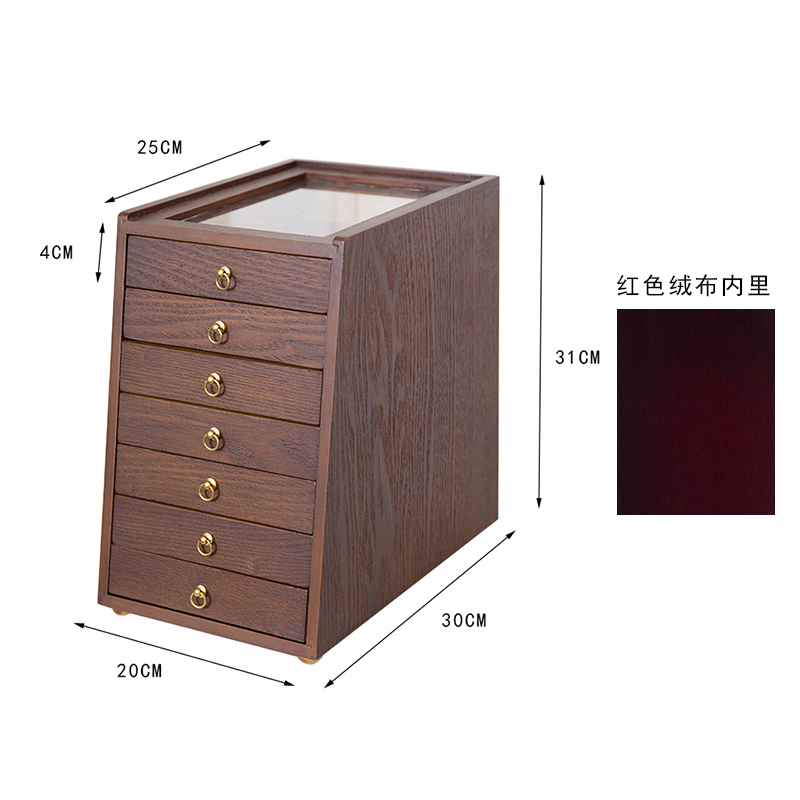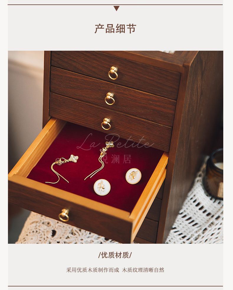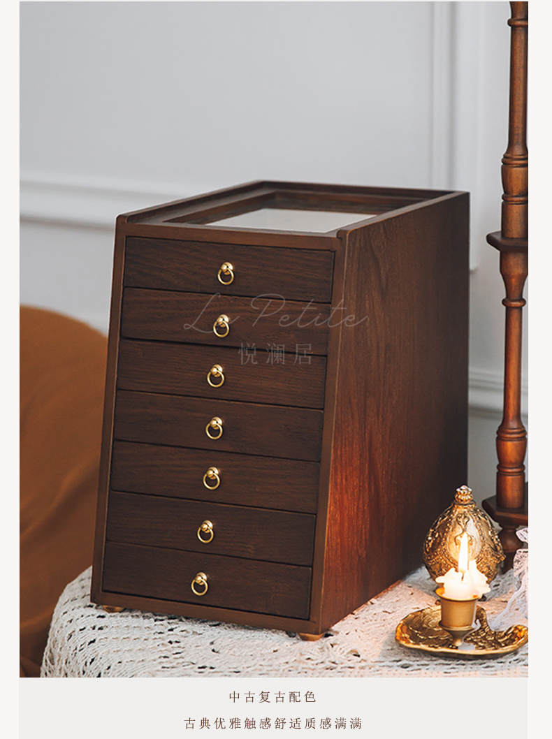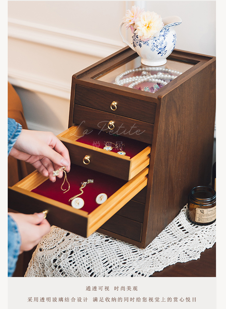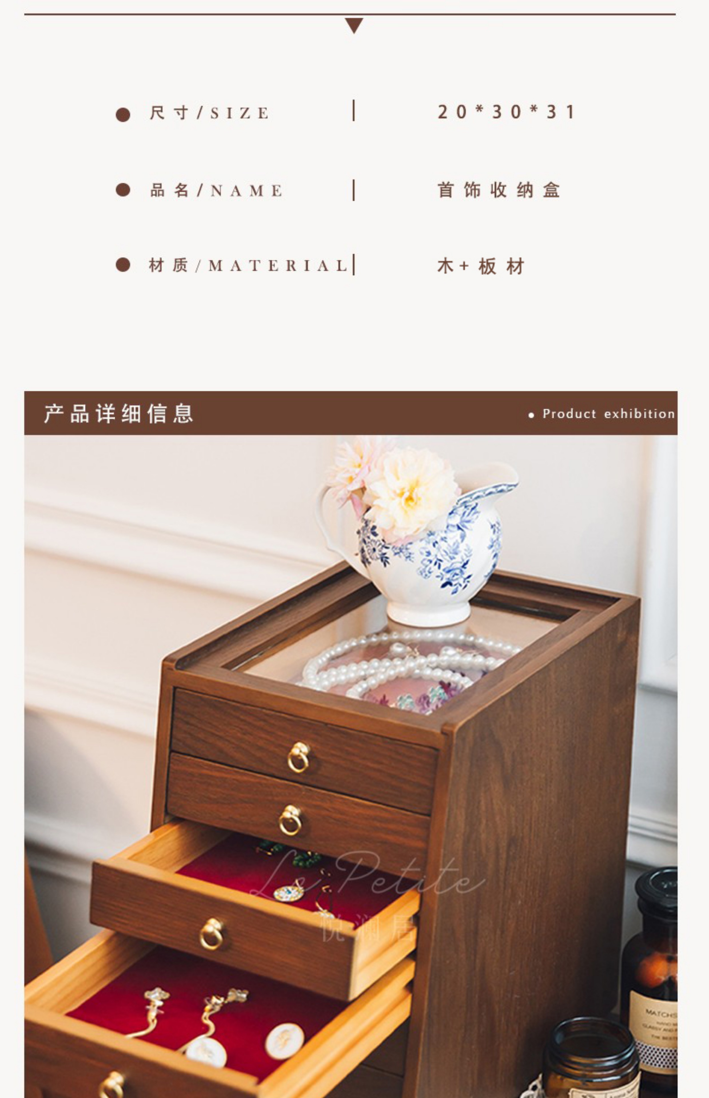 Tiantai Hualian Yuelanju 빈티지 보석 저장 상자 인터넷 유명 나무 보석 데스크탑 클래식 다층 서랍 전시회스토어 가기