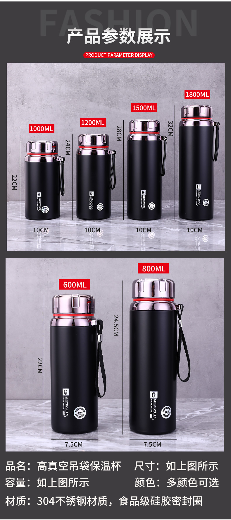 • 골드 1800ml + 무료 컵 커버 [304 두꺼운 스테인레스 스틸]