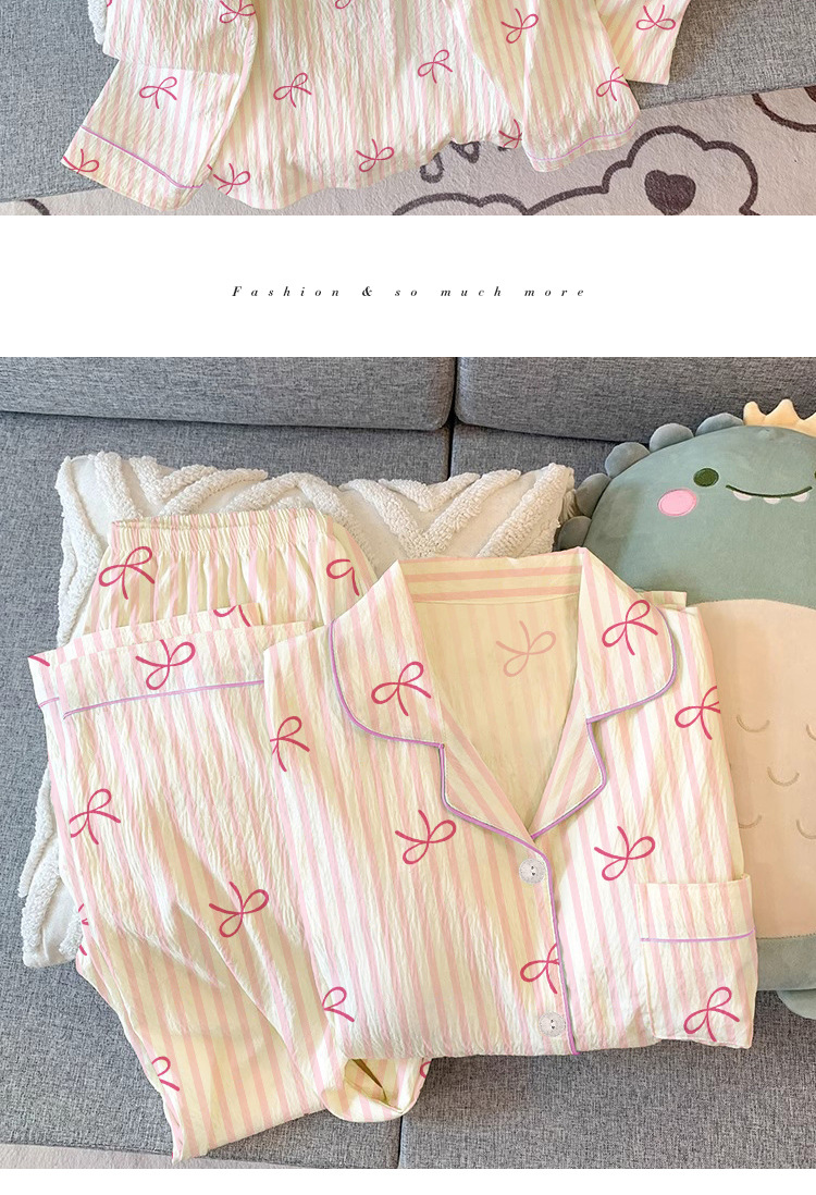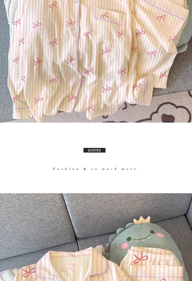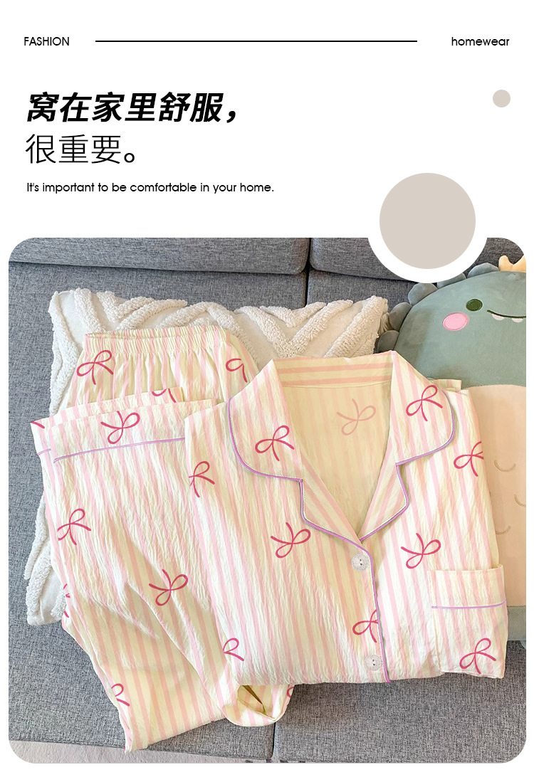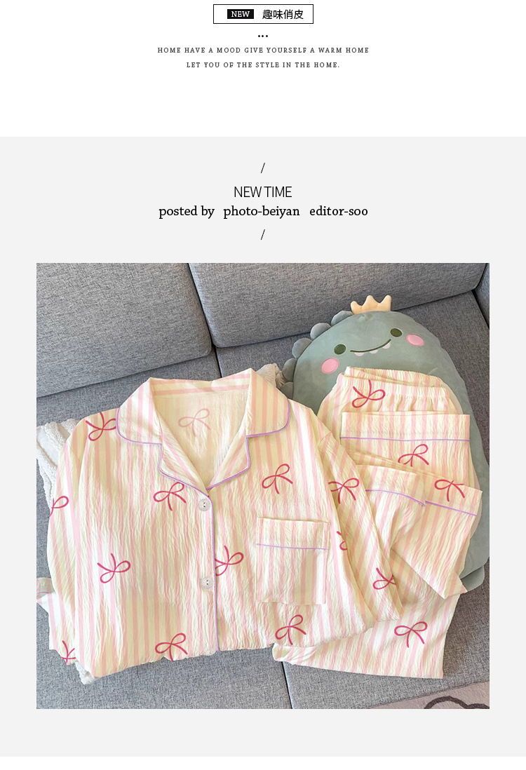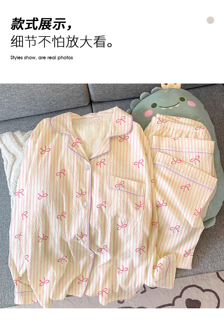 한국 스타일의 새로운 하이 퀄리티 봄과 가을 여성 잠옷 긴 소매 만화 카디건 캐주얼 홈 옷 달콤한 세트 국경스토어 가기