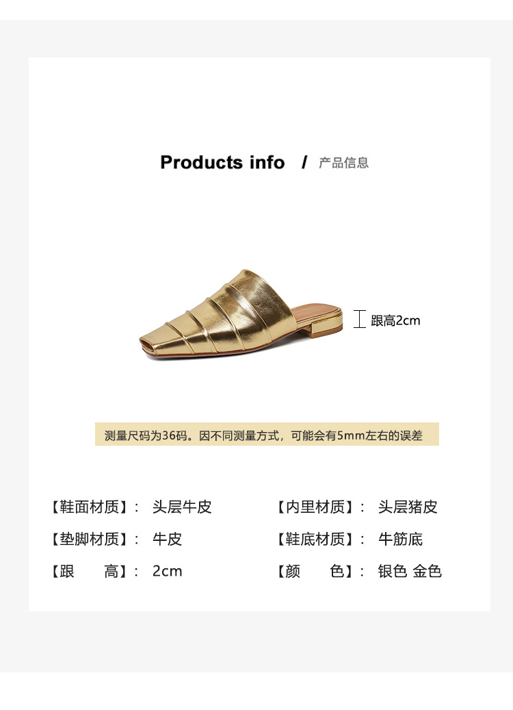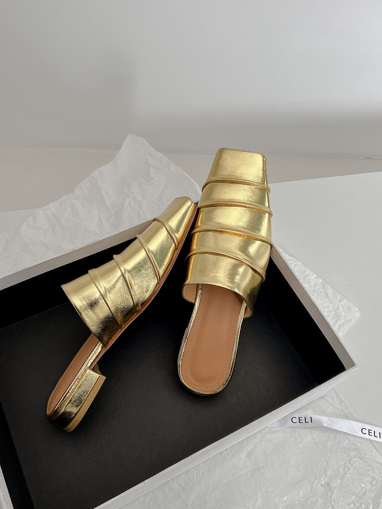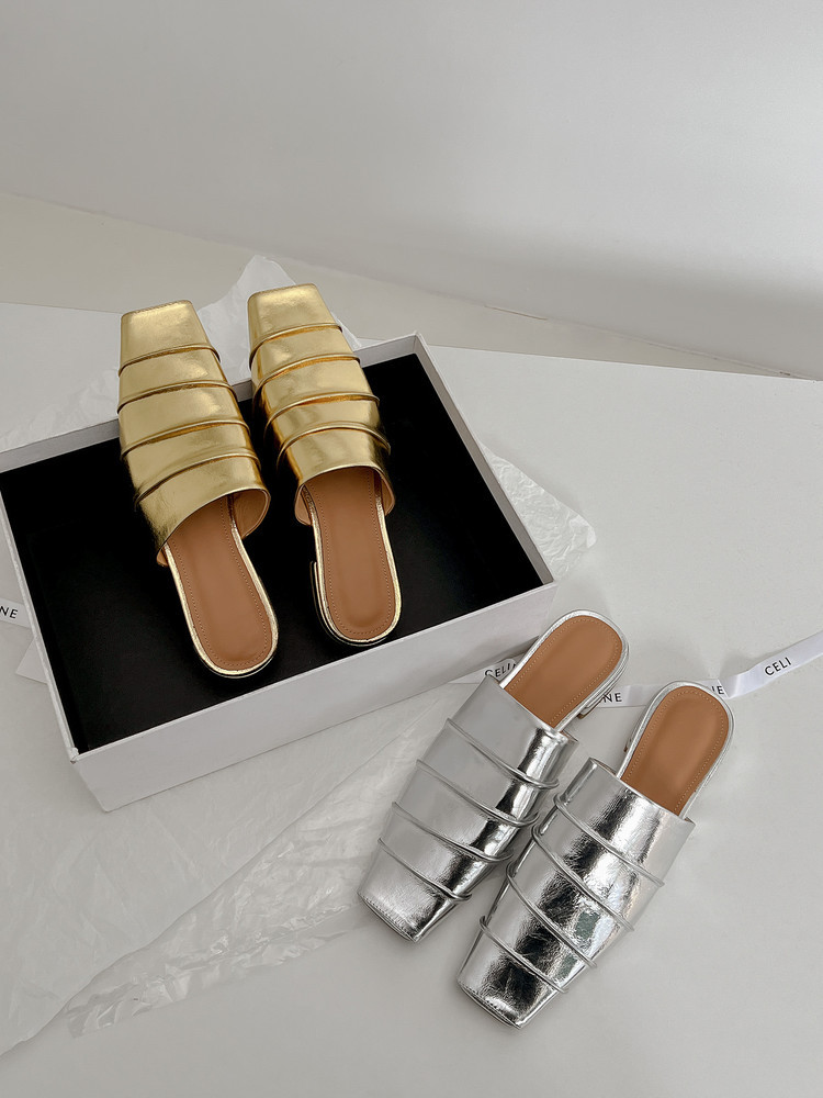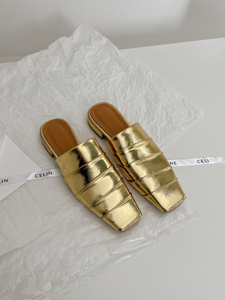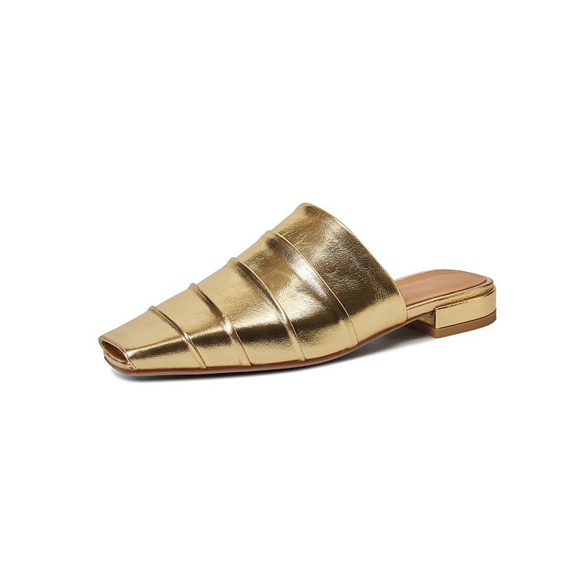 골든 슬리퍼 여성용 샌들과 슬리퍼 2025 여름 새로운 솔리드 컬러 정품 가죽 로우 힐 스퀘어 슬리퍼 여성용 뮬러 슬리퍼