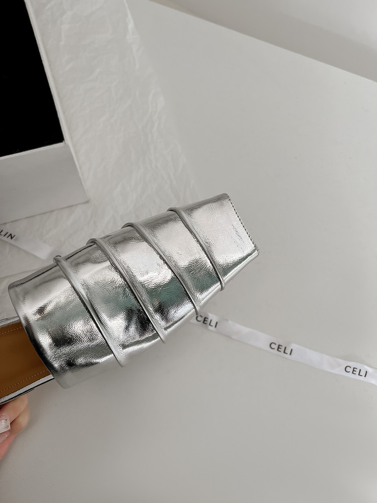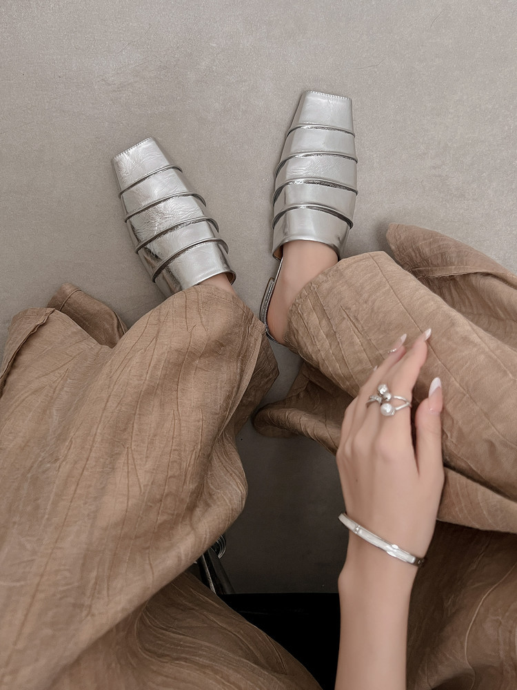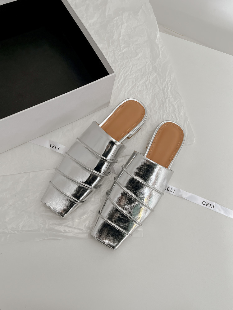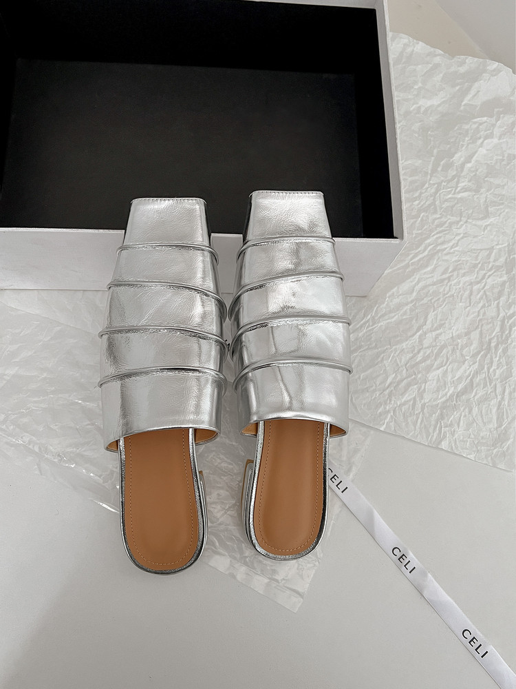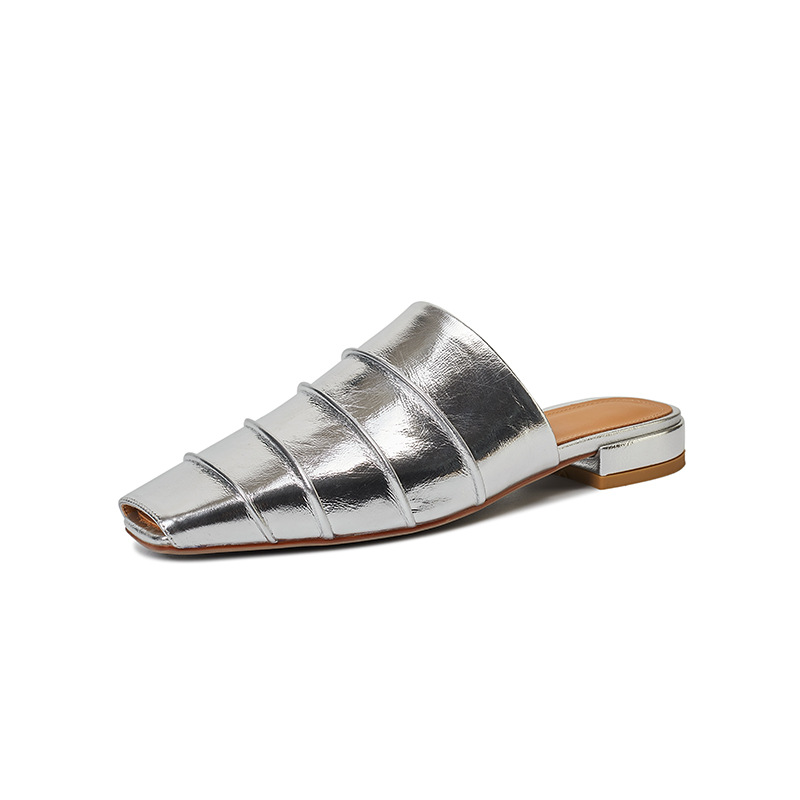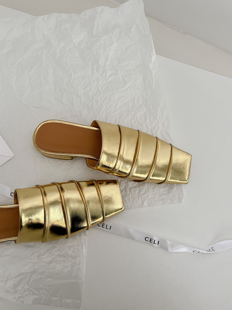 골든 슬리퍼 여성용 샌들과 슬리퍼 2025 여름 새로운 솔리드 컬러 정품 가죽 로우 힐 스퀘어 슬리퍼 여성용 뮬러 슬리퍼