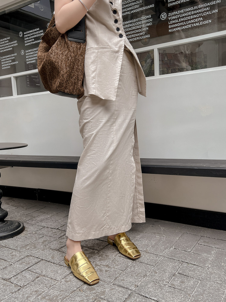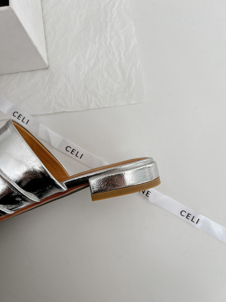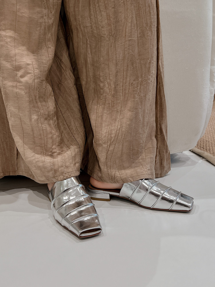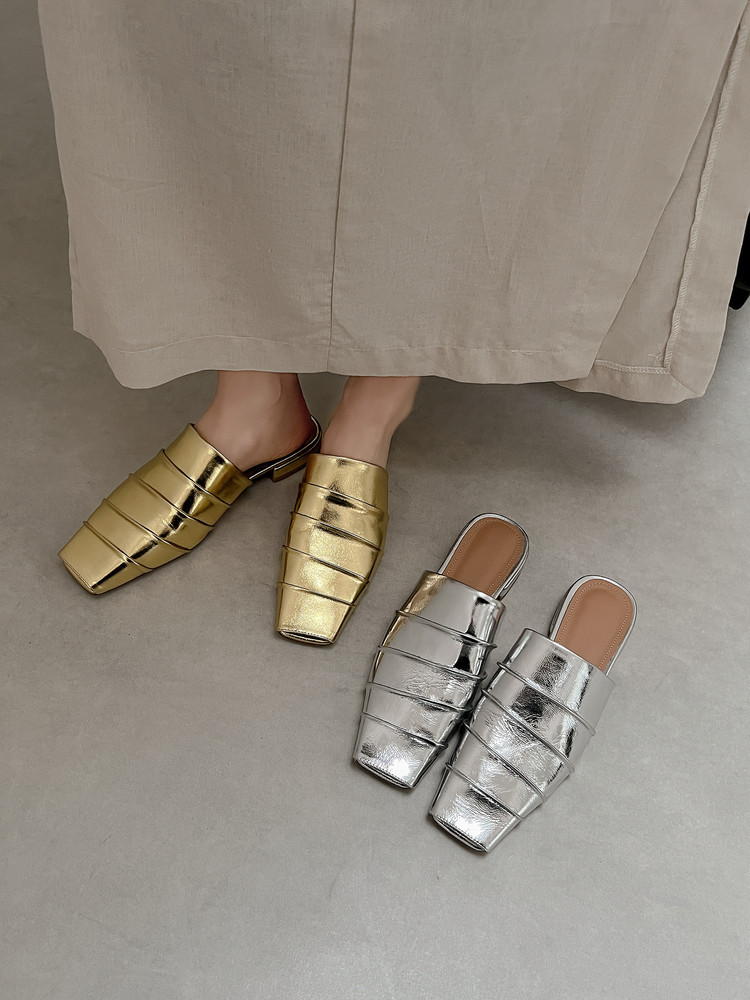 골든 슬리퍼 여성용 샌들과 슬리퍼 2025 여름 새로운 솔리드 컬러 정품 가죽 로우 힐 스퀘어 슬리퍼 여성용 뮬러 슬리퍼스토어 가기