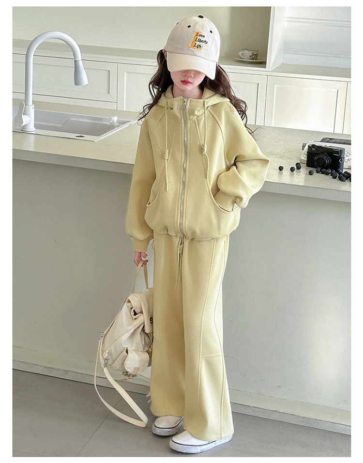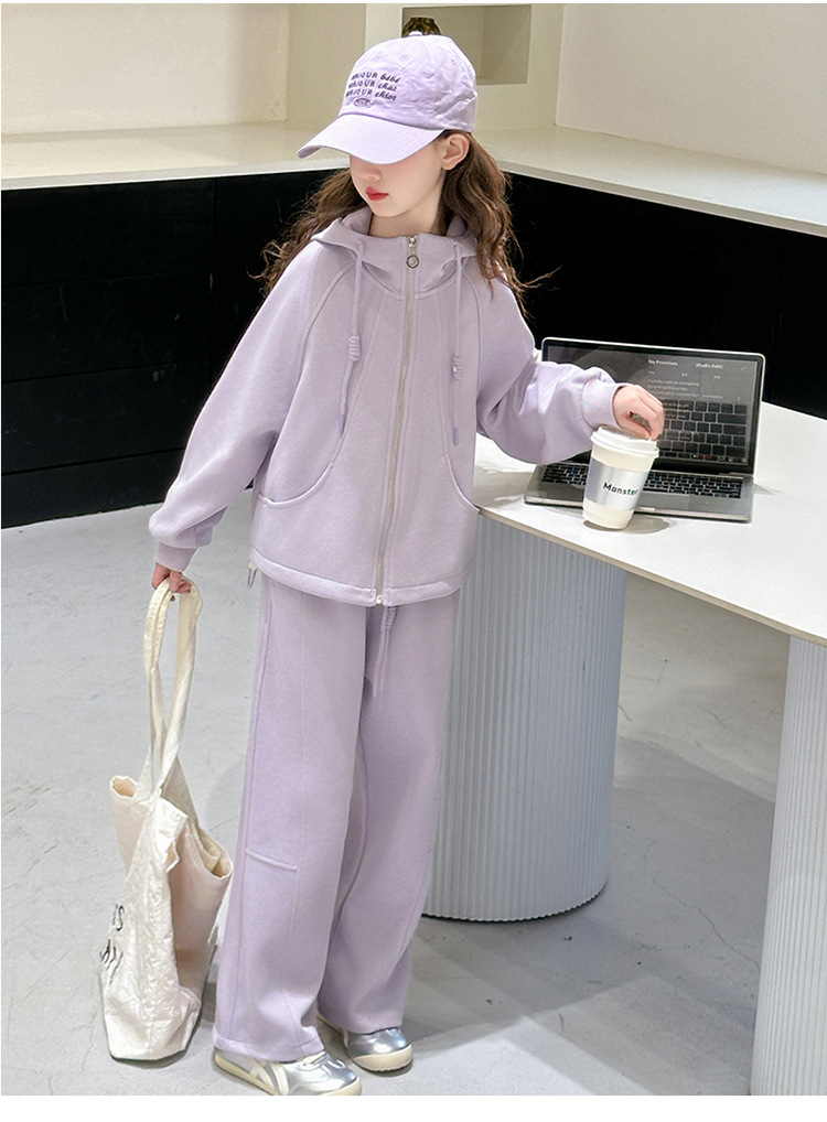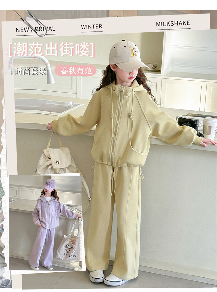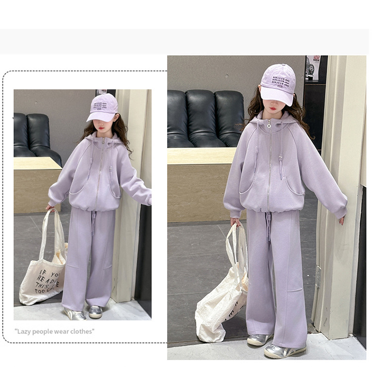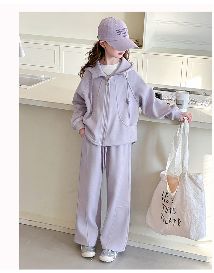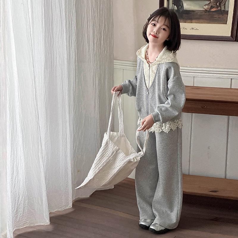 소녀들의 봄 가을 세트 2025 새로운 소녀들 한국식 후드 카디건 어린이 자켓 캐주얼 바지 투피스 세트