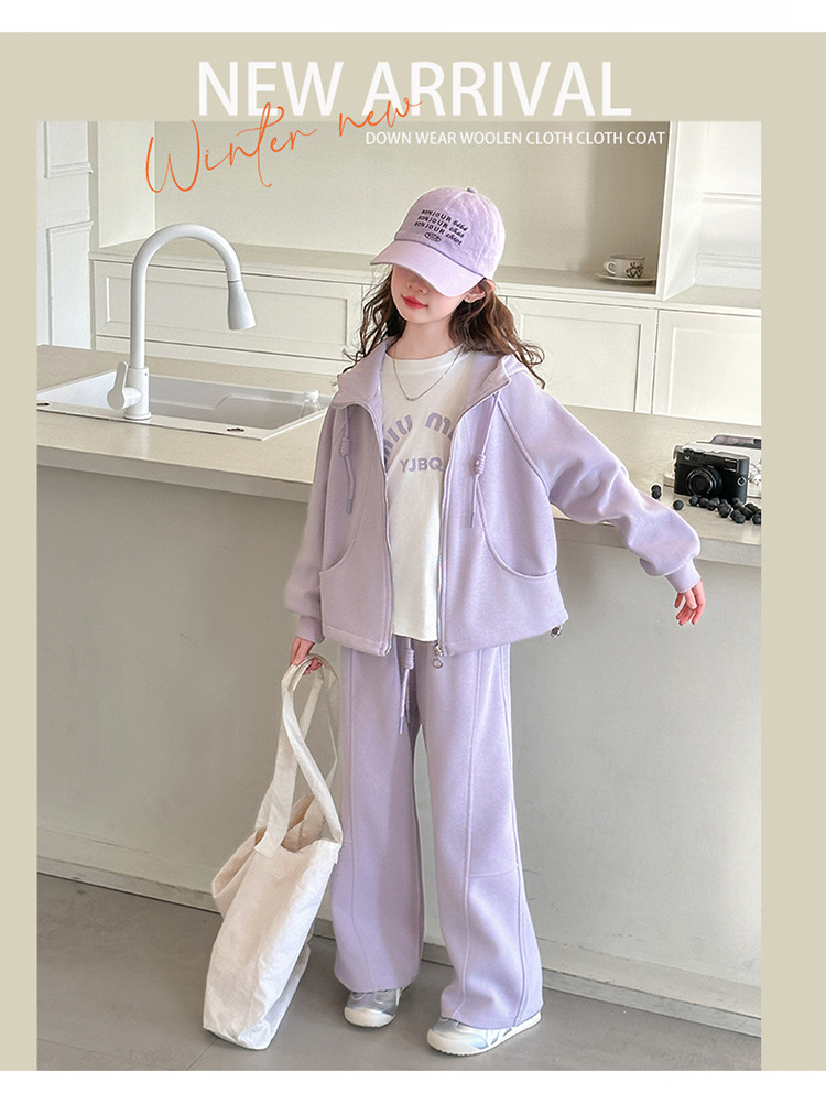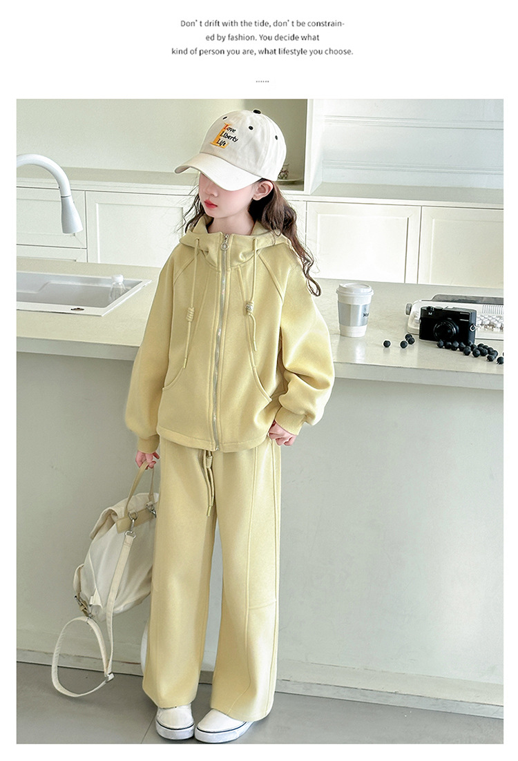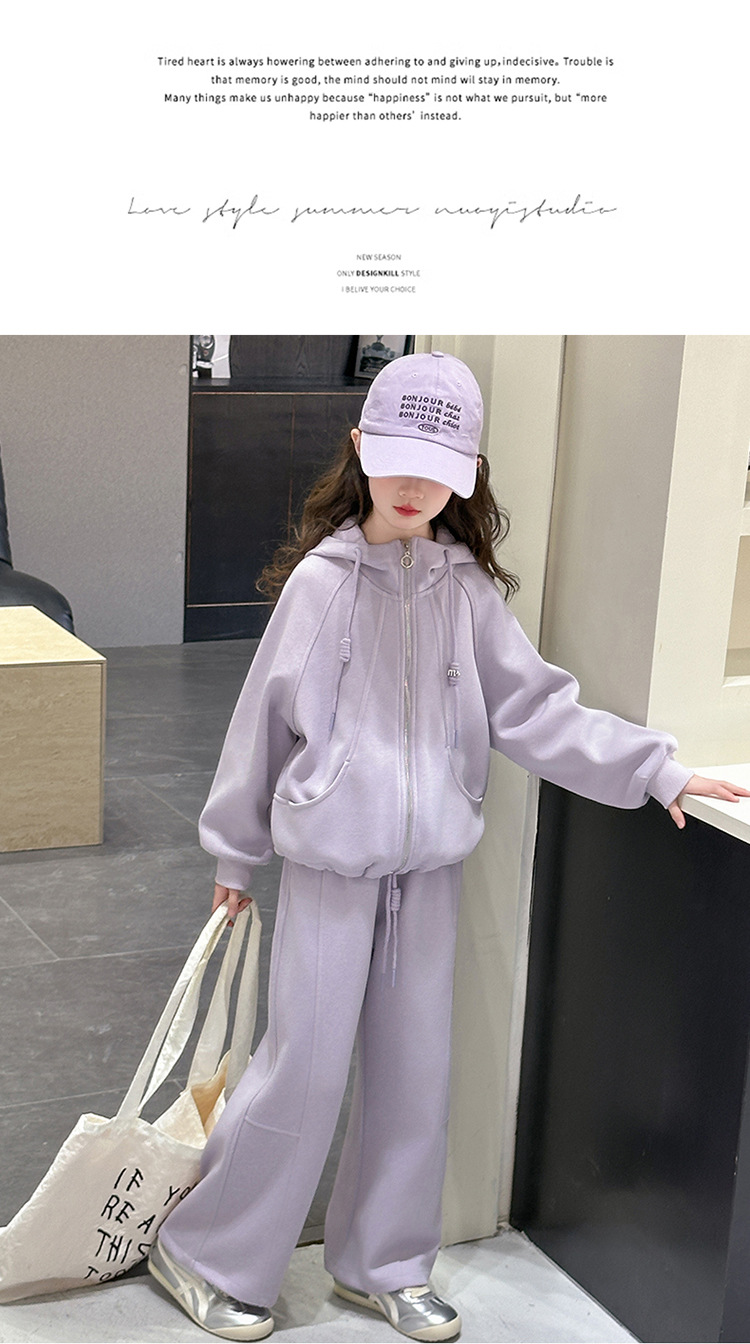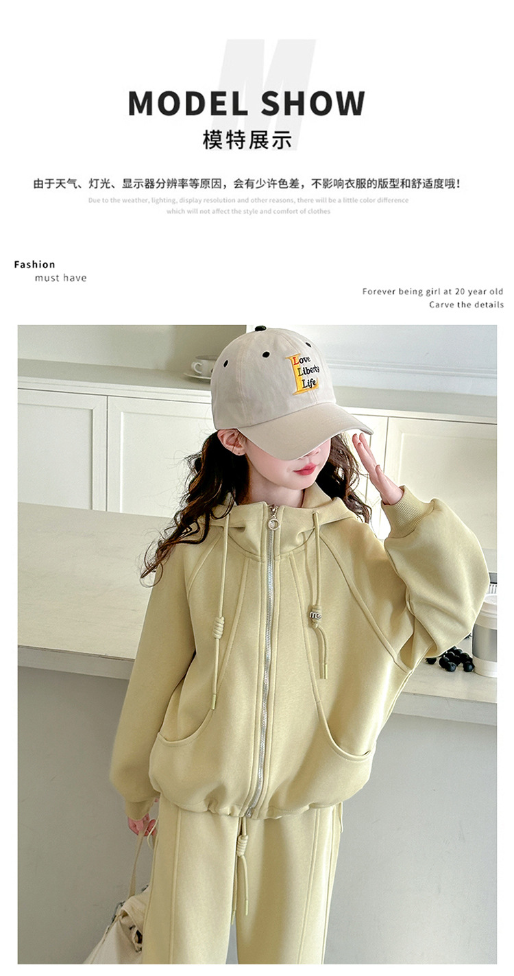 소녀들의 봄 가을 세트 2025 새로운 소녀들 한국식 후드 카디건 어린이 자켓 캐주얼 바지 투피스 세트