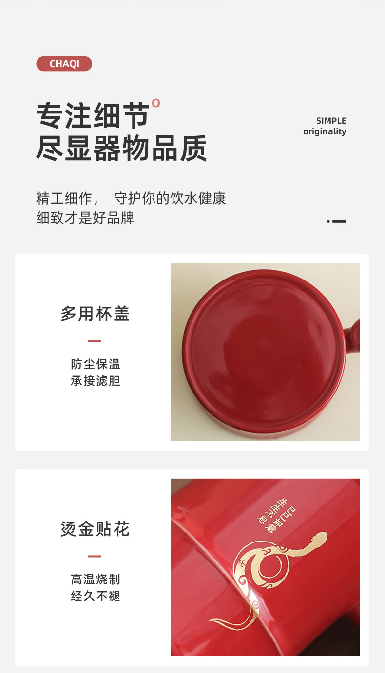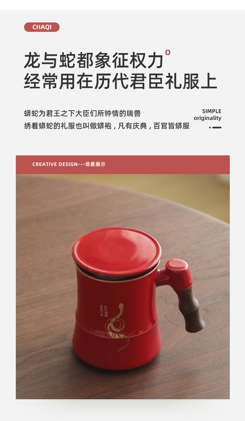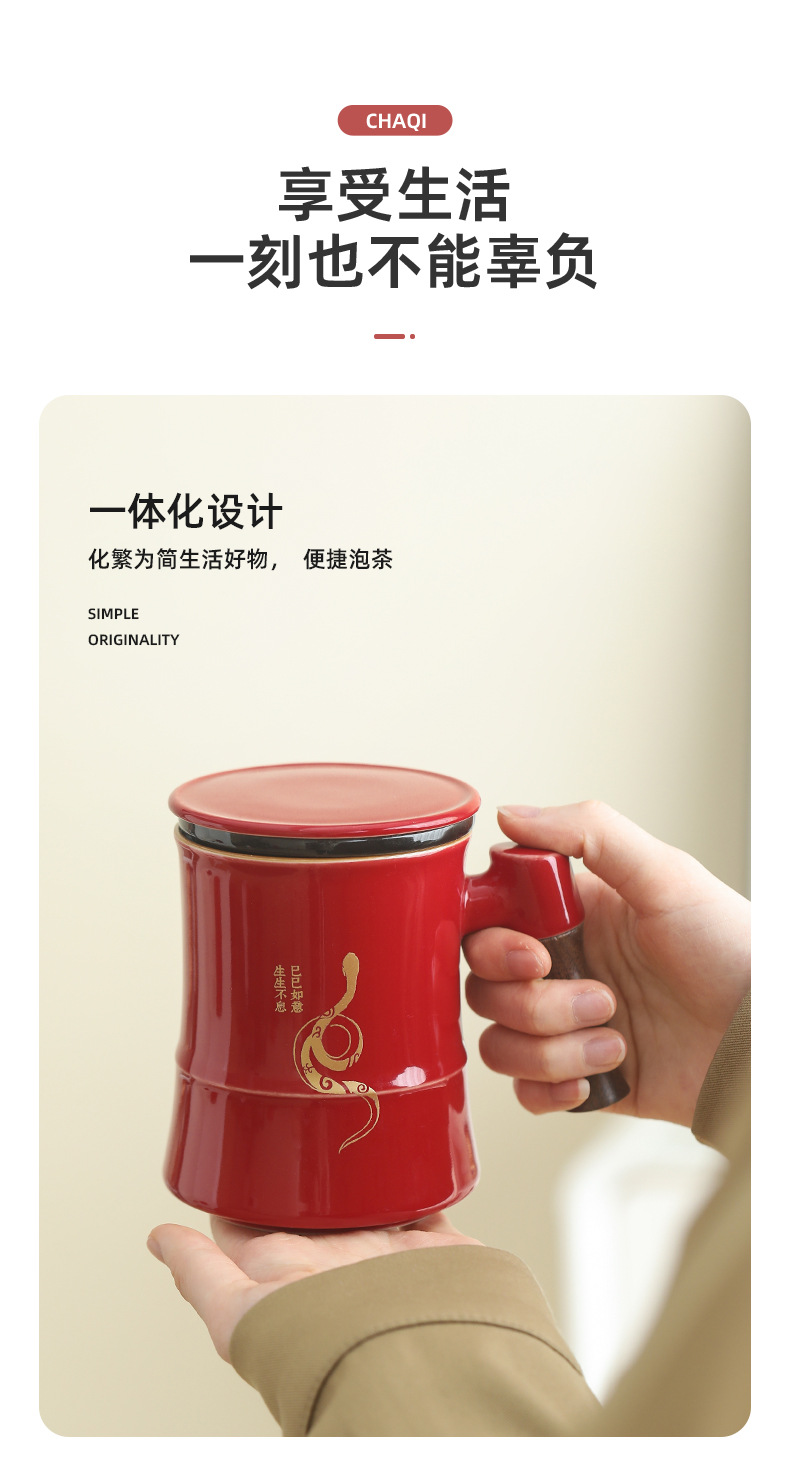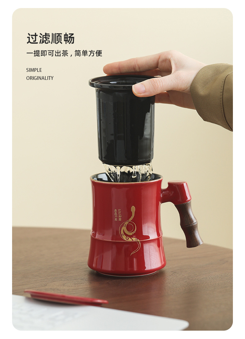 뱀의 해 2025 신년 고궁 박물관 레드 컵 차 분리 티 컵 세라믹 컵 뚜껑 필터 동반식