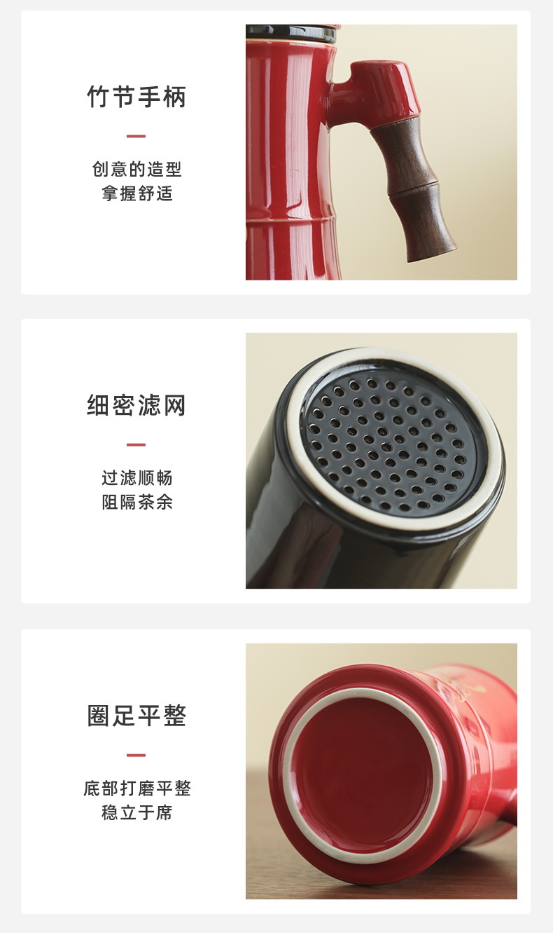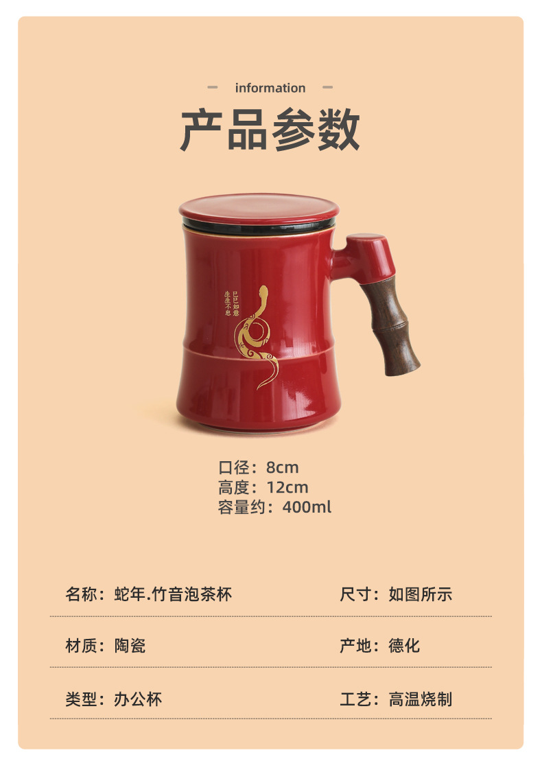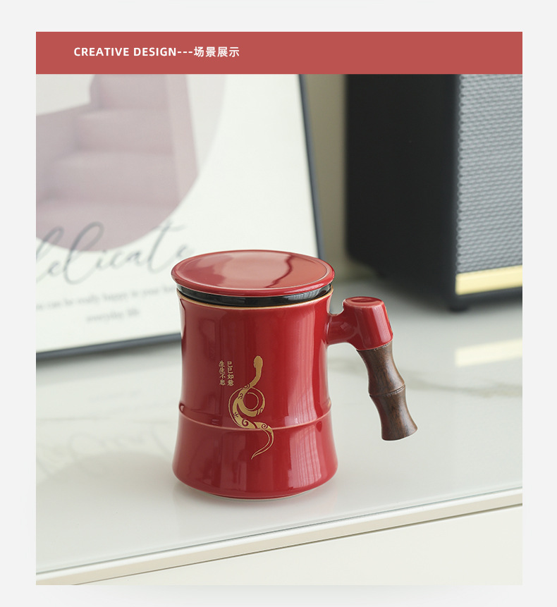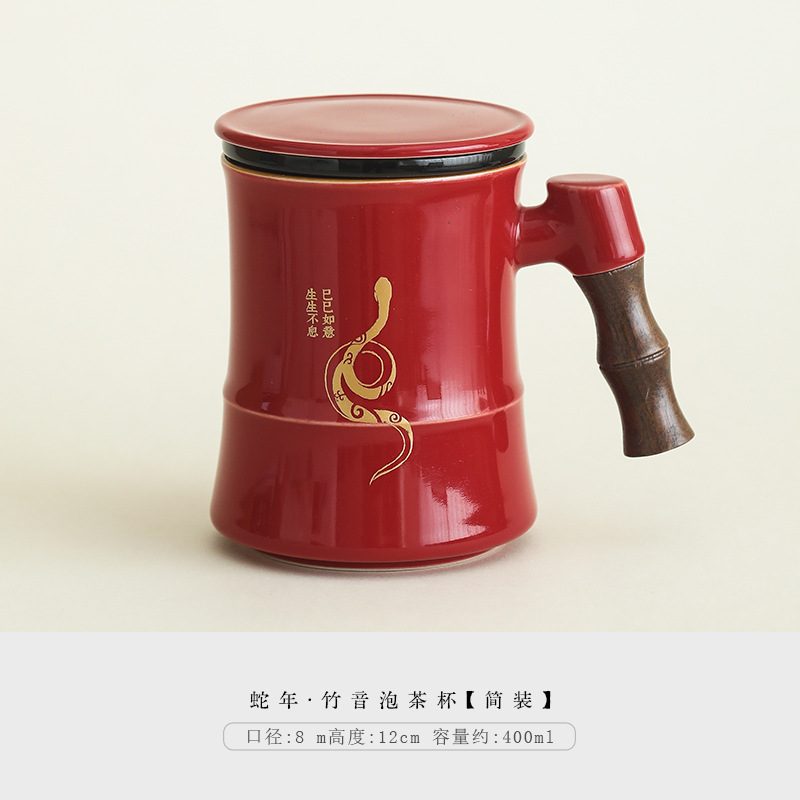 • 뱀의 해 자금성 붉은 대나무 소리 나무 손잡이 컵