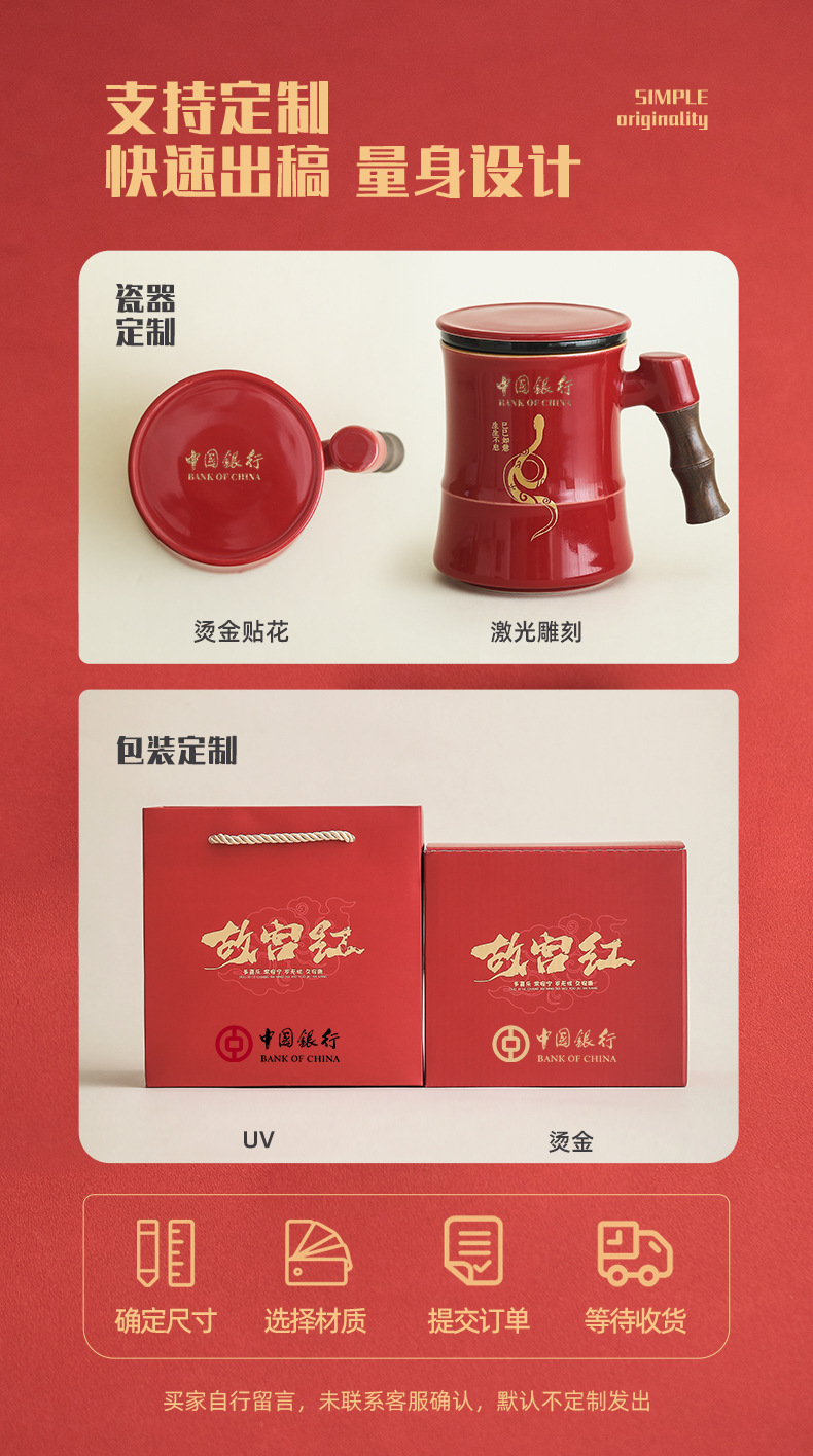 뱀의 해 2025 신년 고궁 박물관 레드 컵 차 분리 티 컵 세라믹 컵 뚜껑 필터 동반식스토어 가기