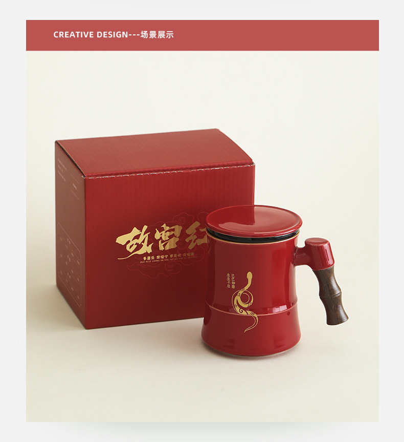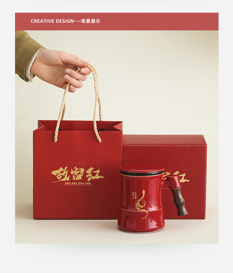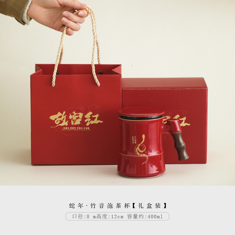 • 뱀의 해 자금성 붉은 대나무 소리 나무 손잡이 컵 선물 상자
