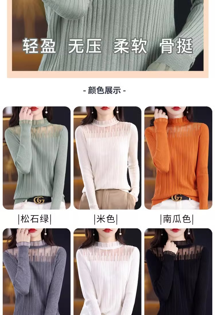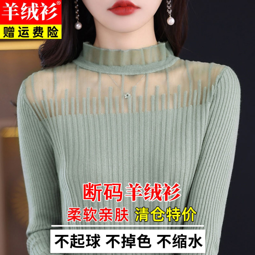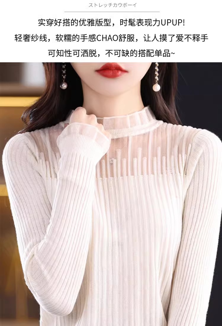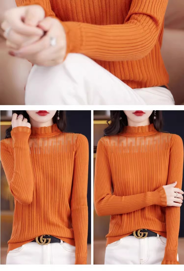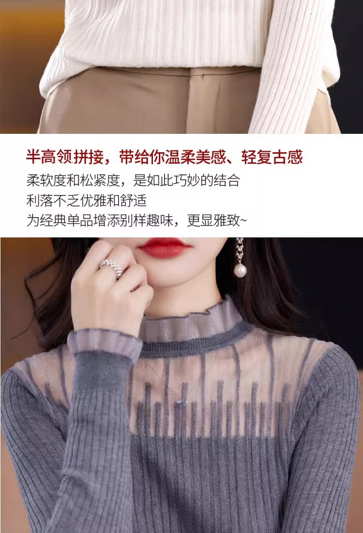[정품 정리] 여성용 하프 터틀넥 스웨터 패션 서양식 우드 이어 할로우 아웃 니트 베이스 스웨터스토어 가기