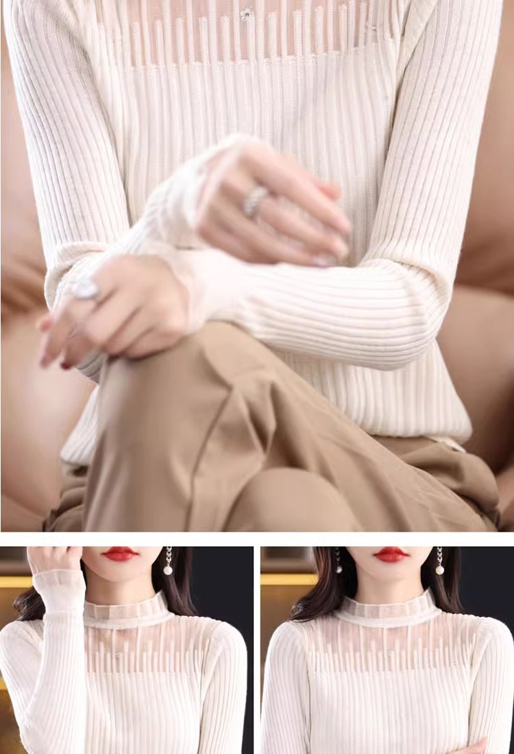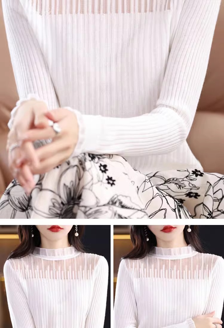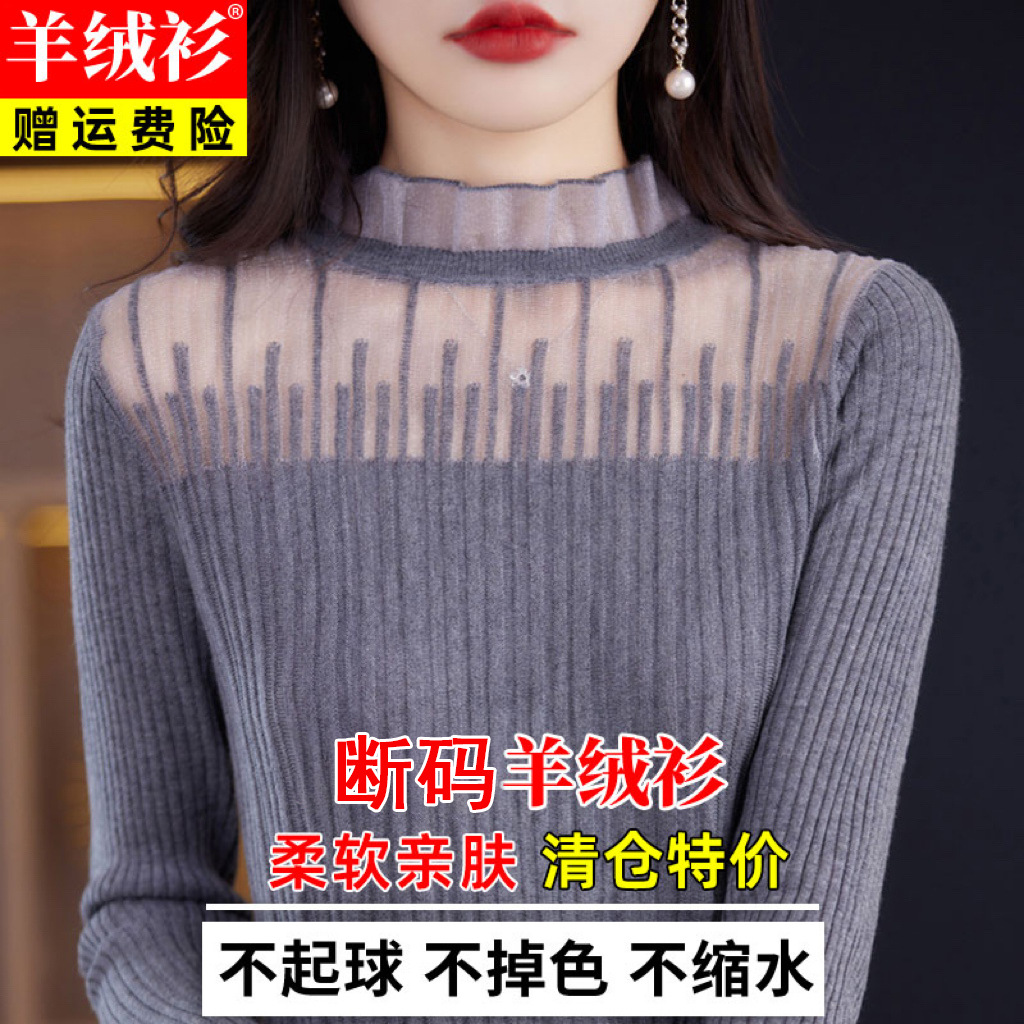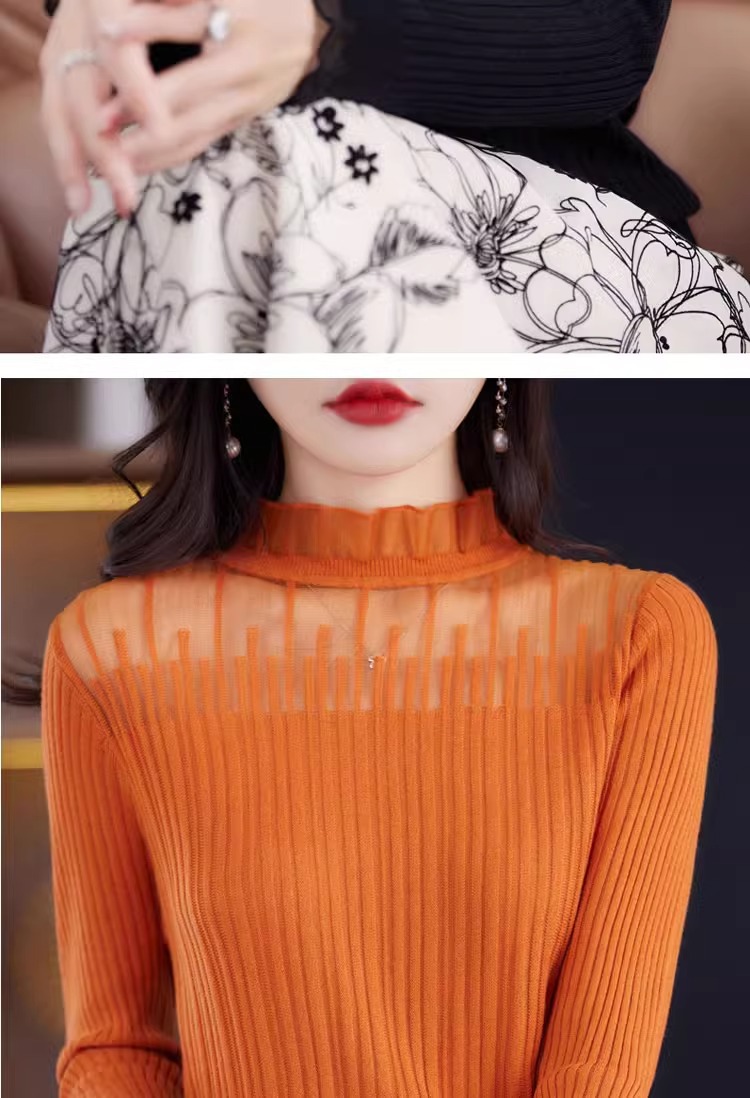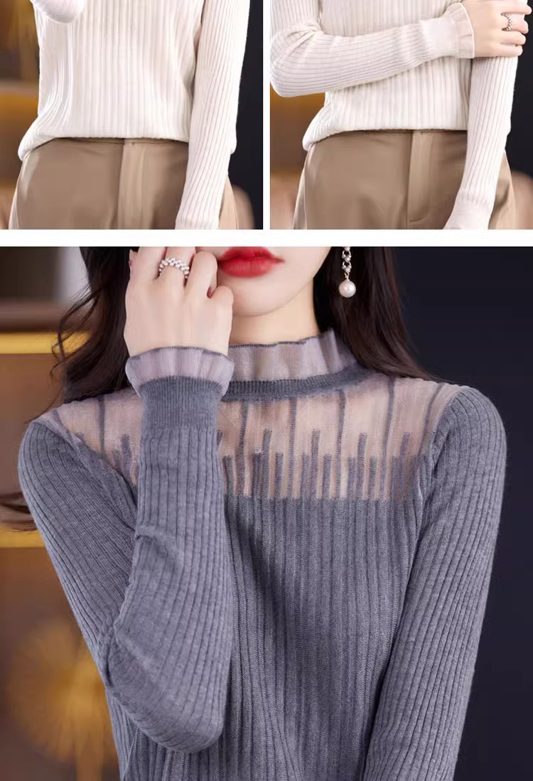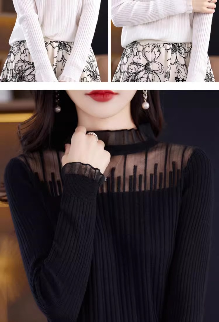 [정품 정리] 여성용 하프 터틀넥 스웨터 패션 서양식 우드 이어 할로우 아웃 니트 베이스 스웨터스토어 가기