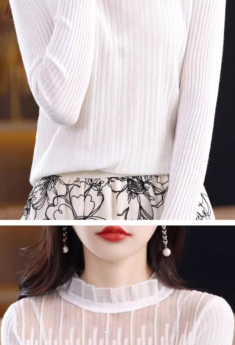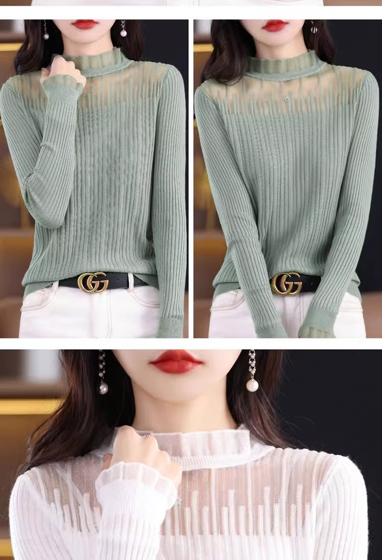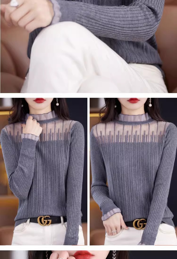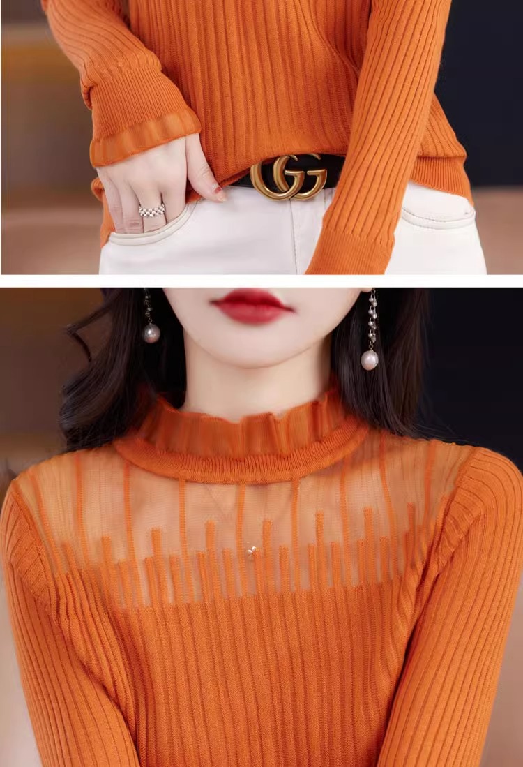 [정품 정리] 여성용 하프 터틀넥 스웨터 패션 서양식 우드 이어 할로우 아웃 니트 베이스 스웨터