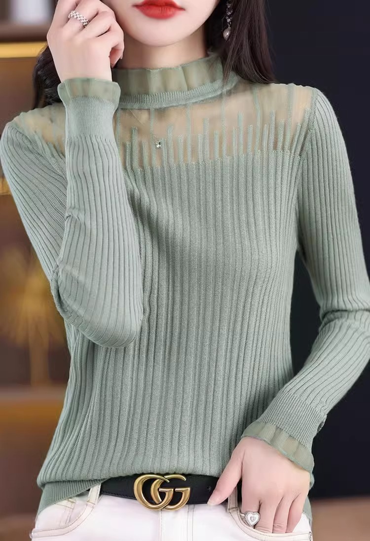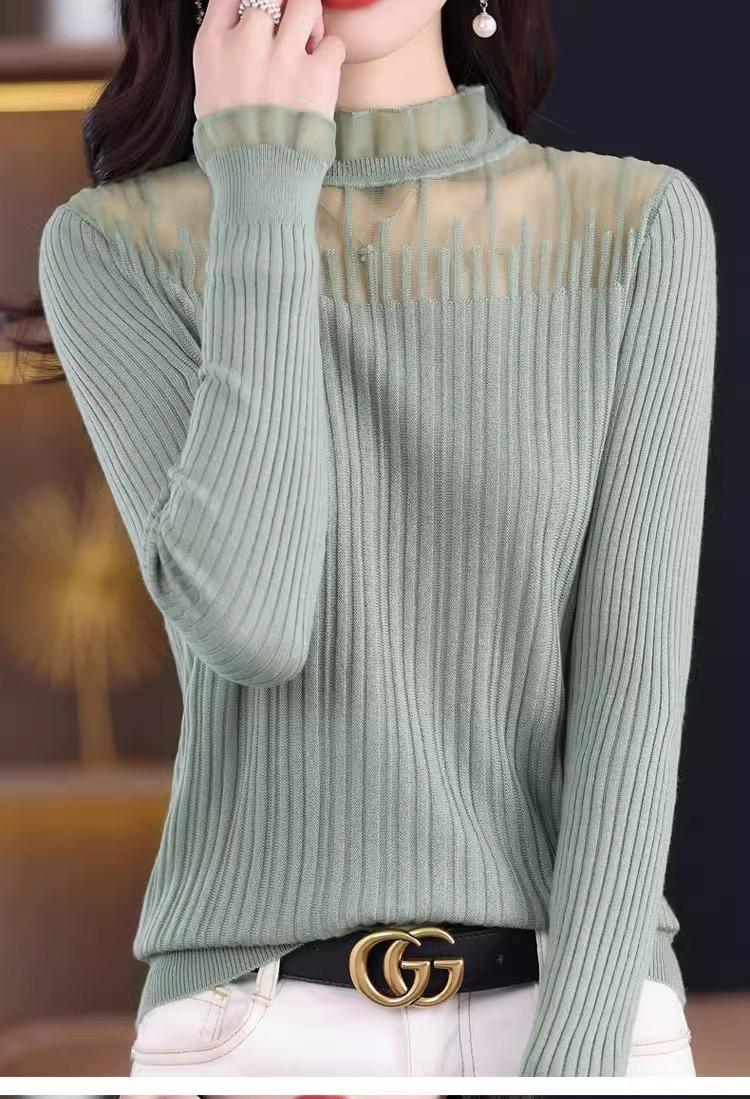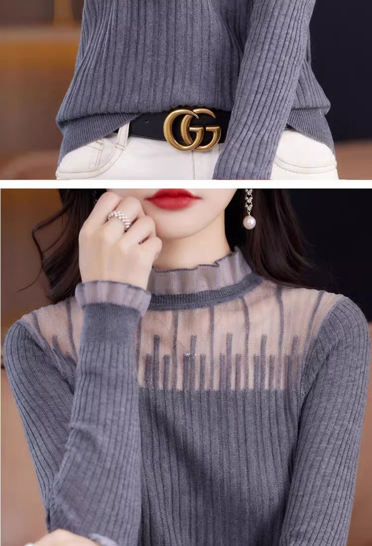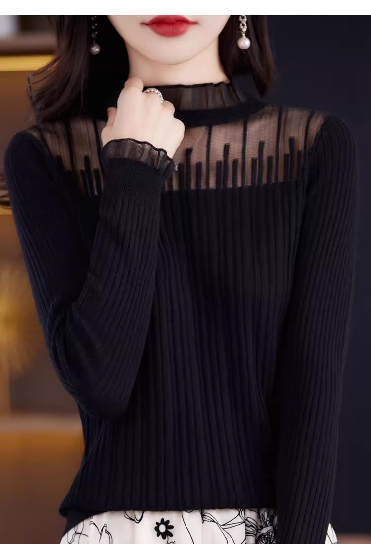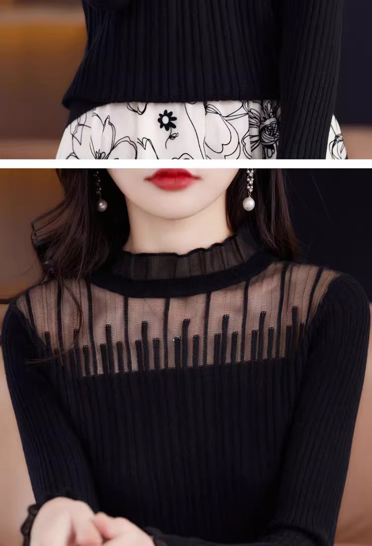 [정품 정리] 여성용 하프 터틀넥 스웨터 패션 서양식 우드 이어 할로우 아웃 니트 베이스 스웨터