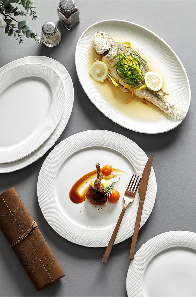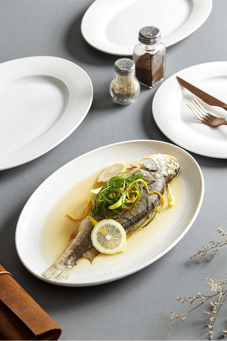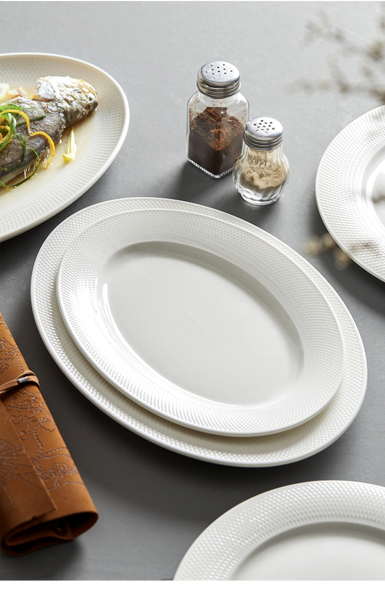Tiantai Hualian 2024 새로운 타원형 생선 접시 가구 찐 생선 접시 창조적 인 북유럽 세라믹 접시