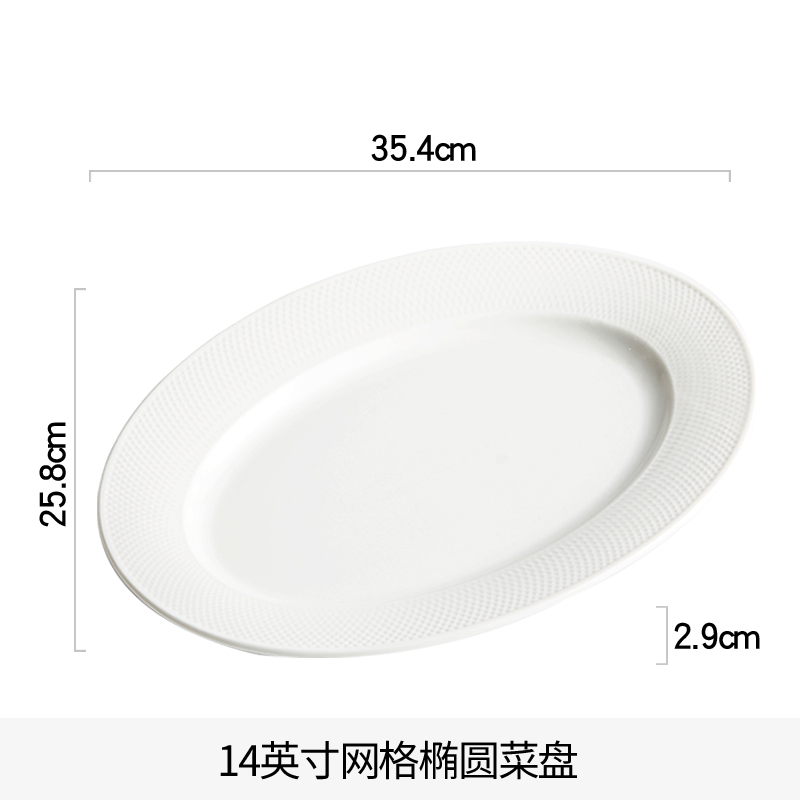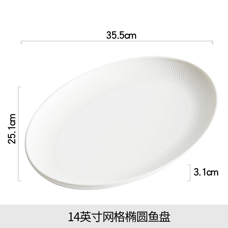 • 14inch 그리드 타원형 생선 접시 길이 35.5cm