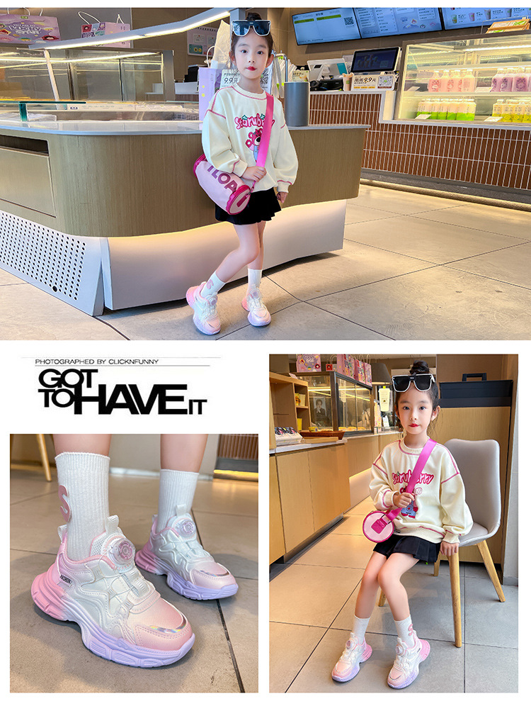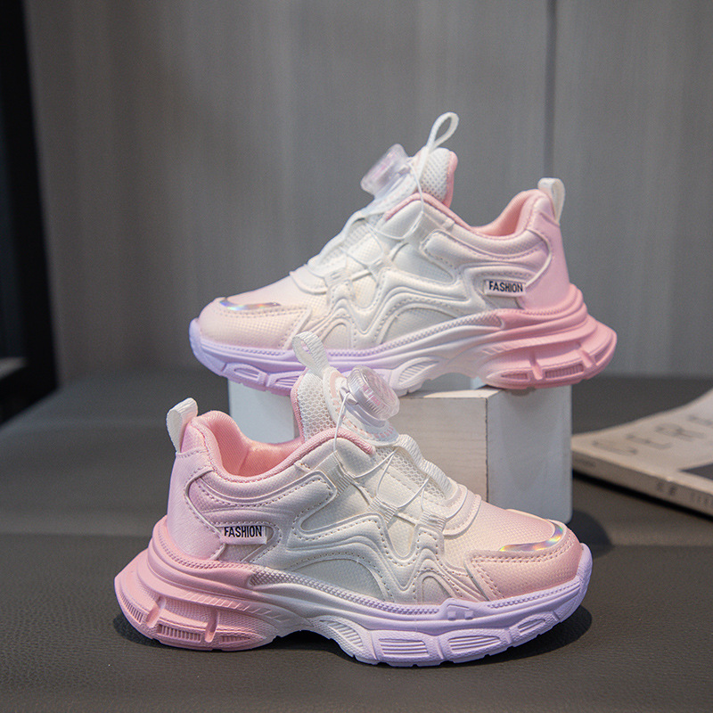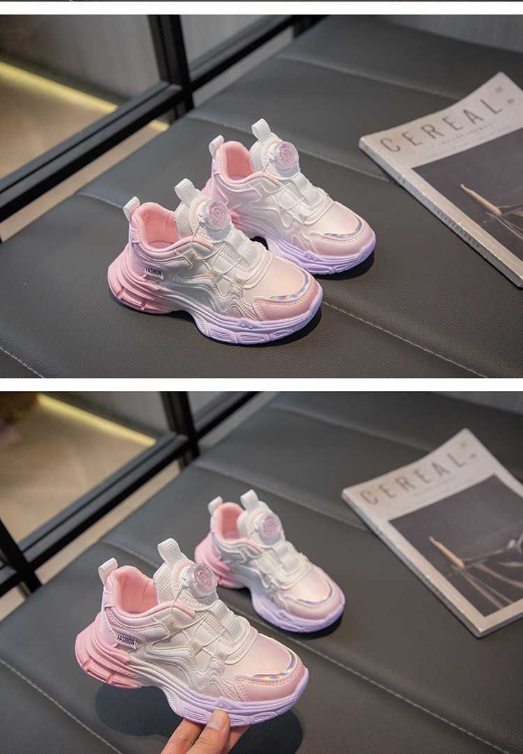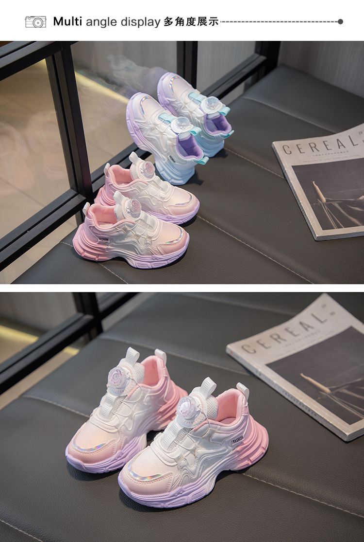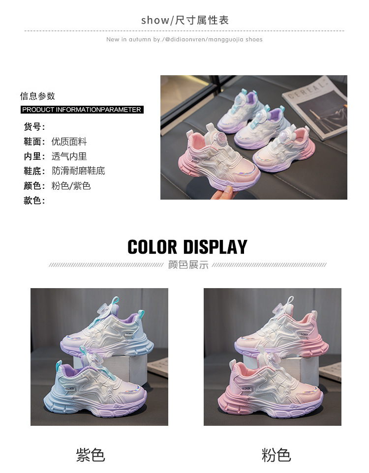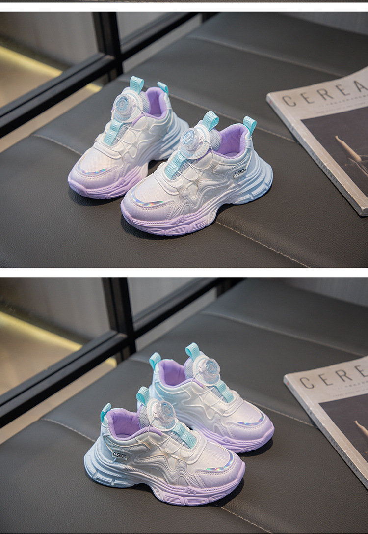2024 가을을위한 소녀 그라디언트 가죽 운동화 버튼 신발 새로운 스타일 중대형 어린이 소녀 캐주얼 신발 올매치 트렌디스토어 가기