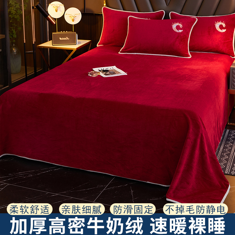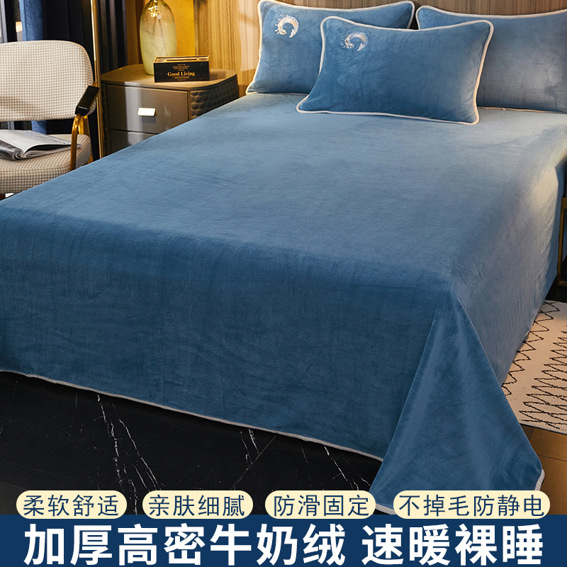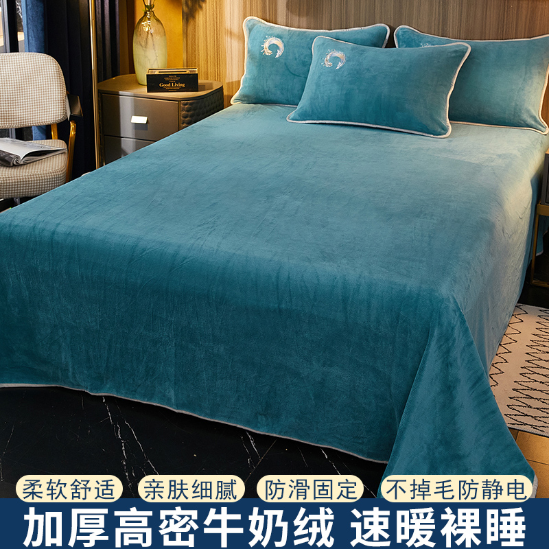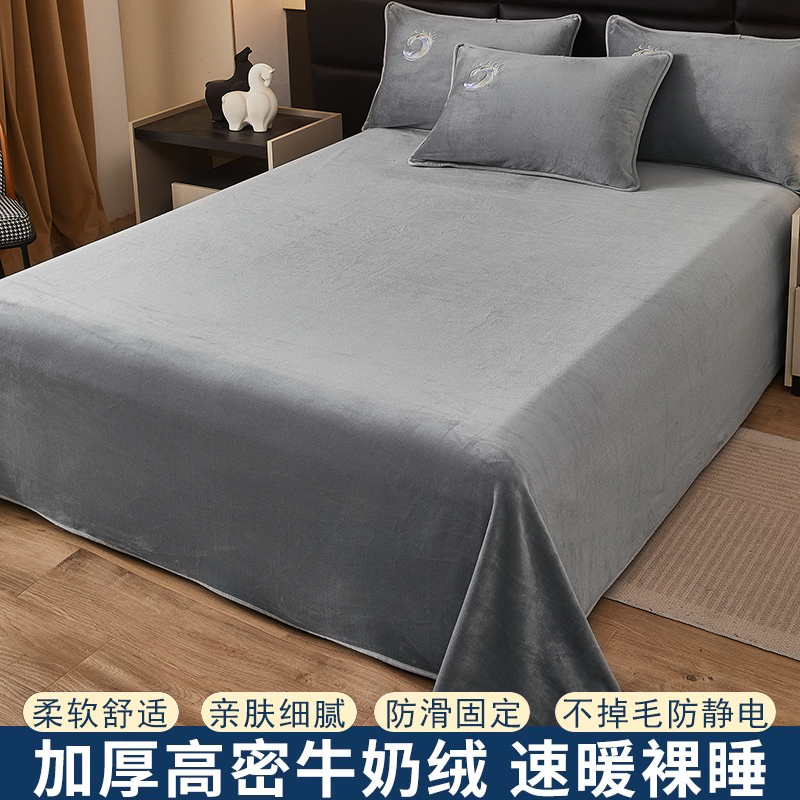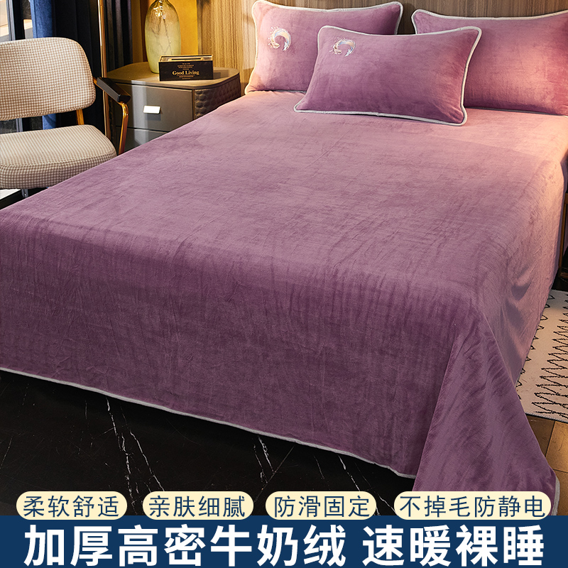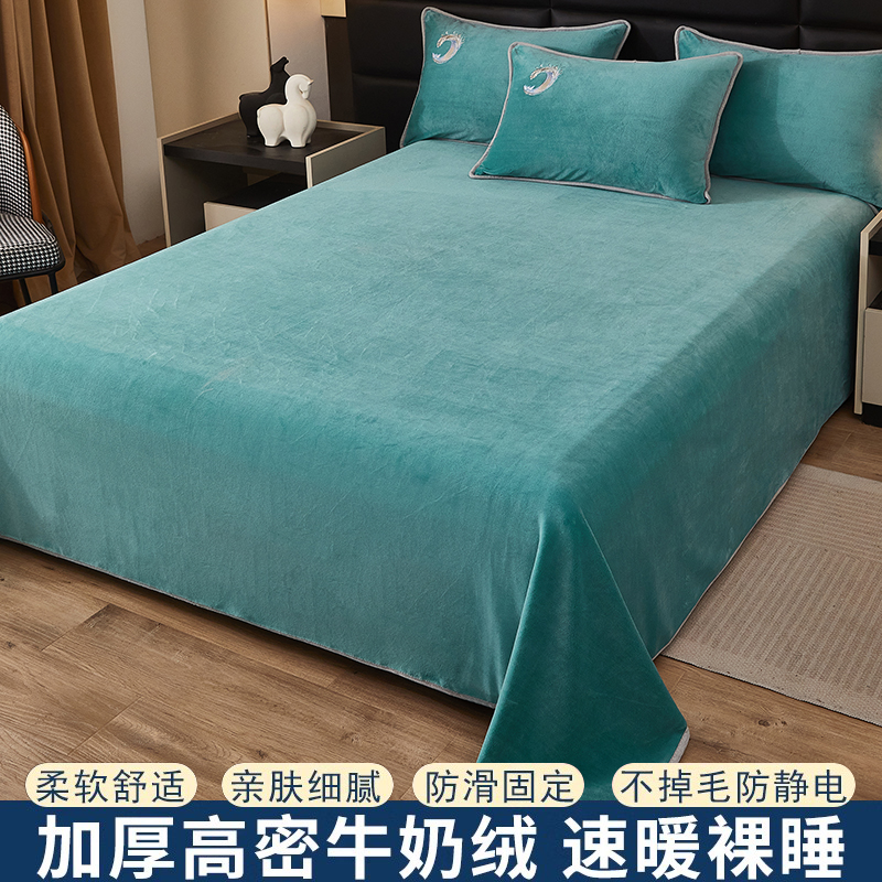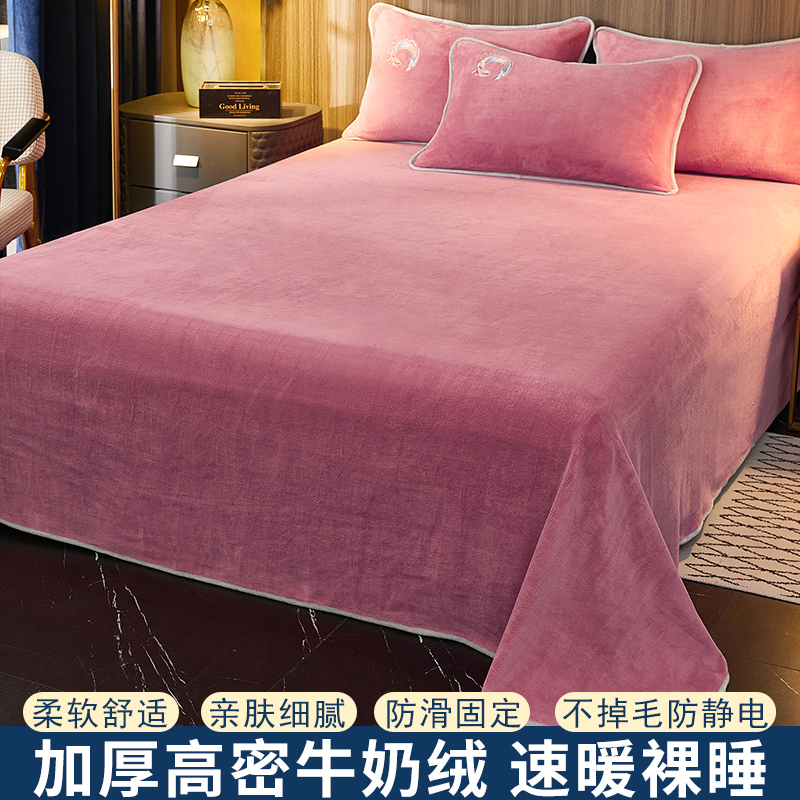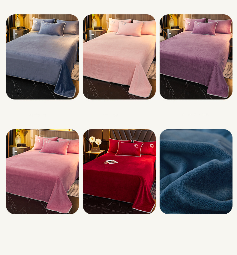 Tiantai Hualian 우유 벨벳 시트 싱글 피스 솔리드 컬러 코랄 벨벳 시트 두꺼운 따뜻한 울 담요 안티 슬립 겨울