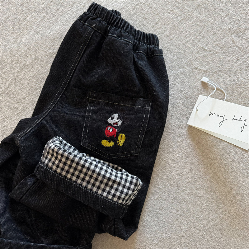 2025년 봄 신상 아동용 긴바지 남녀 아동복 만화 자수 데님 팬츠 유아용 스플라이스 스트레이트 팬츠스토어 가기