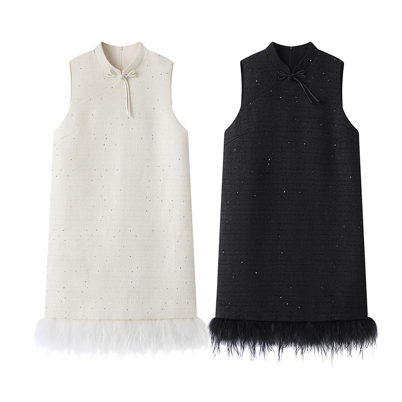 가벼운 럭셔리 새로운 중국 스타일 세트 칼라 빅 원피스 봄 새로운 도착 분리 가능한 얇은 A 라인 스커트 작은 샤넬 스타일 원피스스토어 가기
