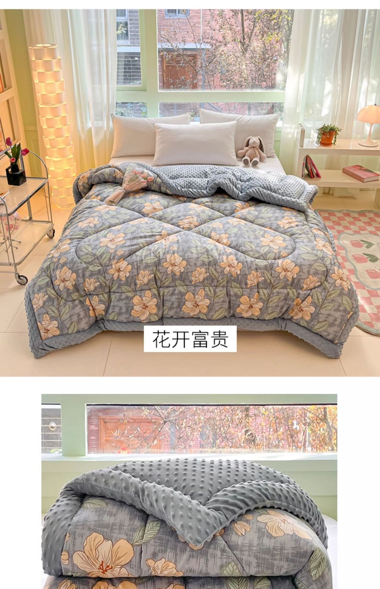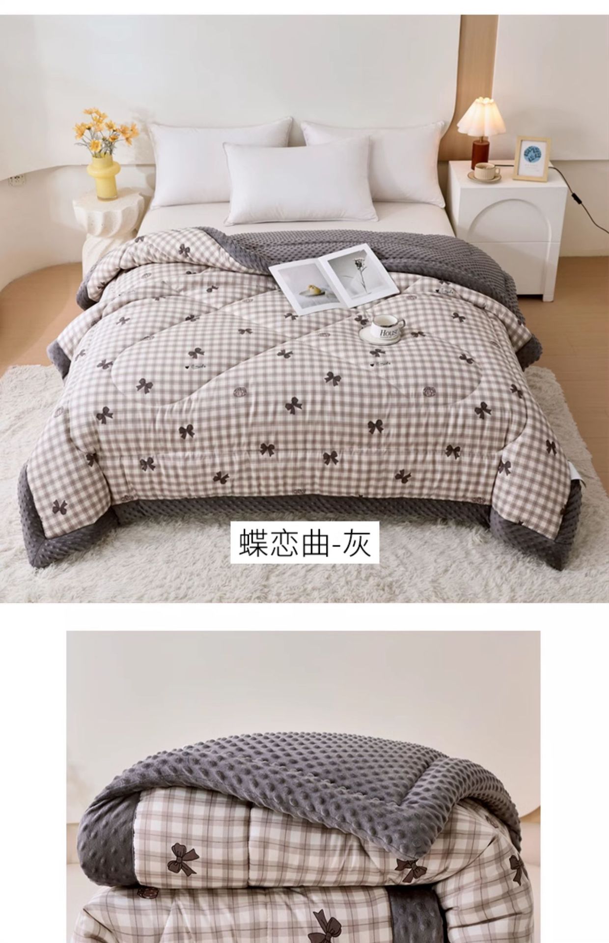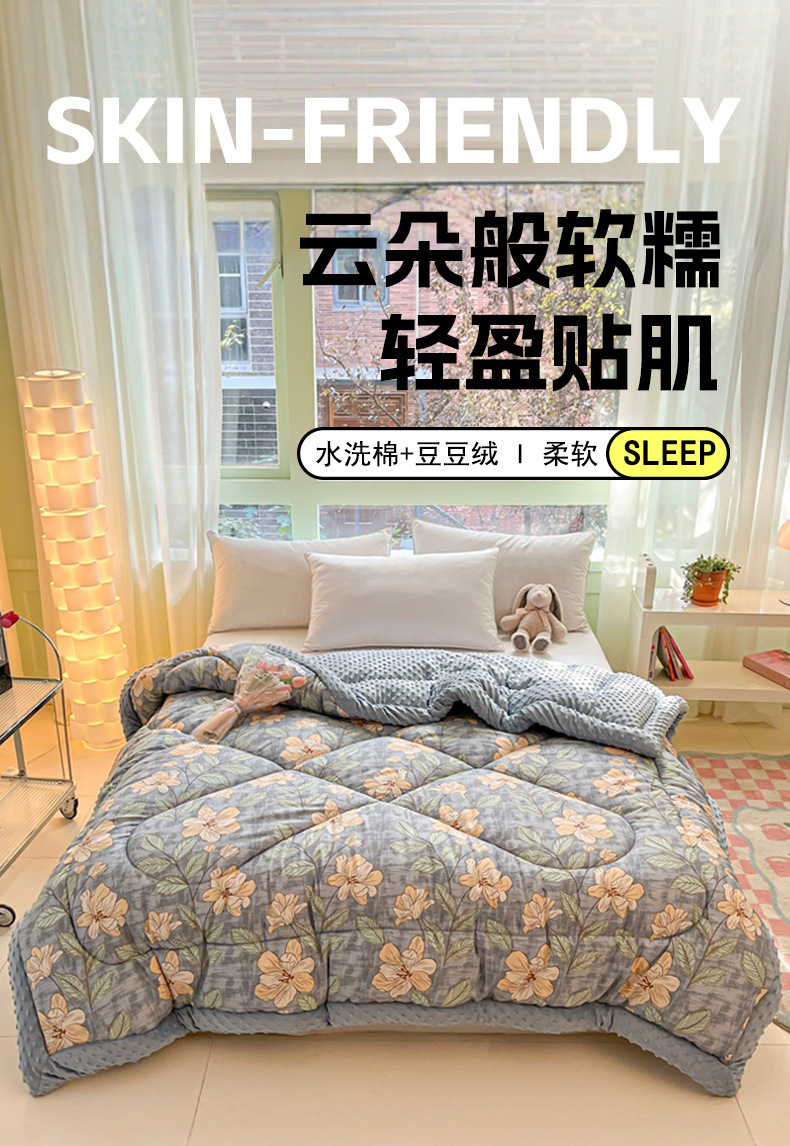 2025 새로운 봄과 여름 완두콩 벨벳 이불 양면 대두 퀼트 겨울 코어 따뜻한 침실 더블 기모 매트리스스토어 가기