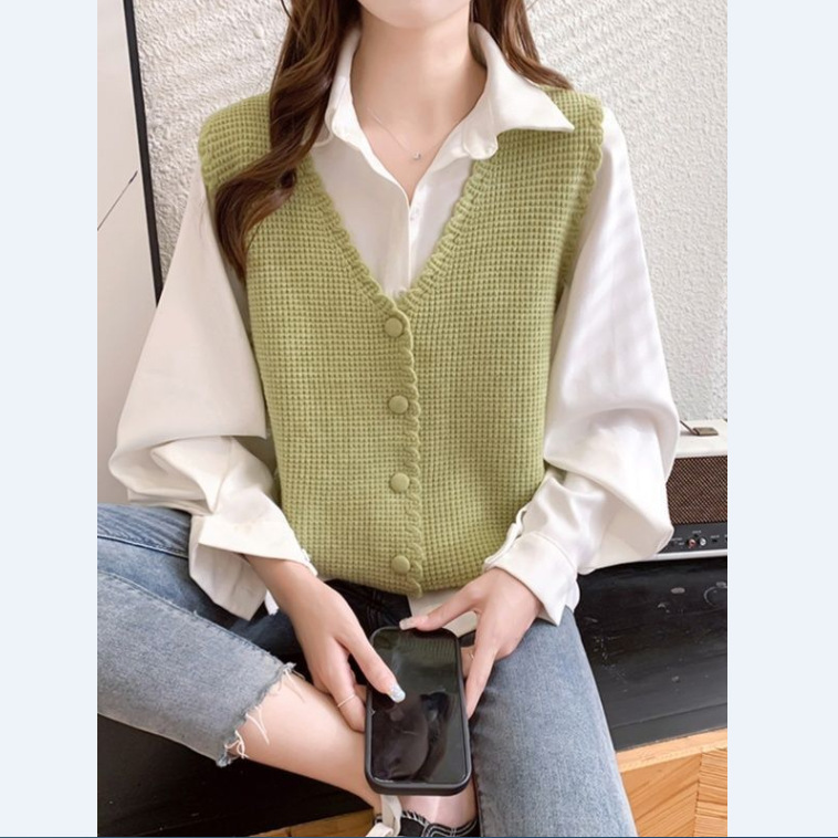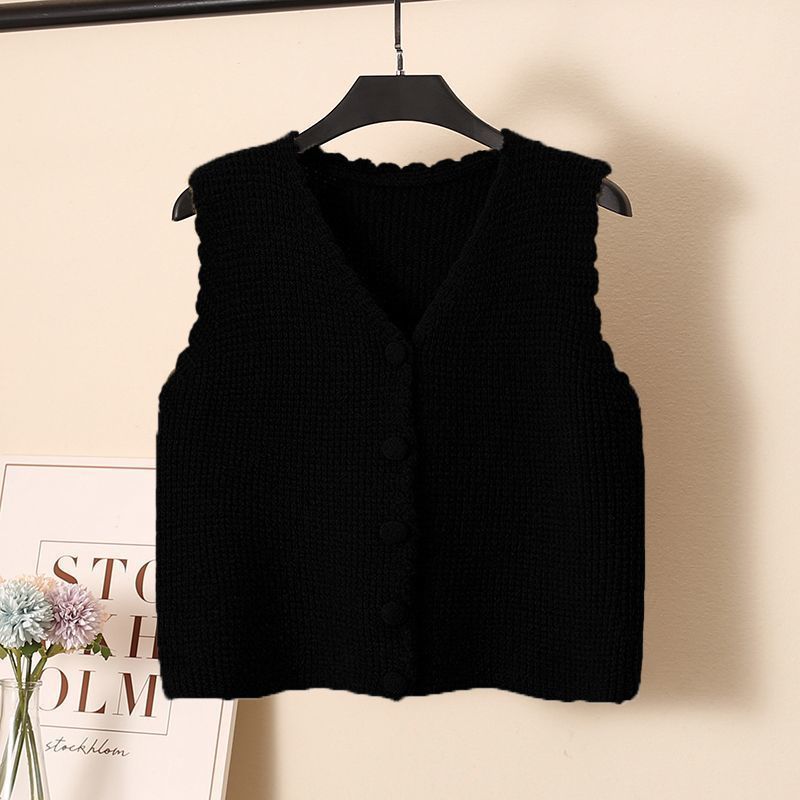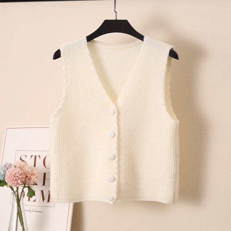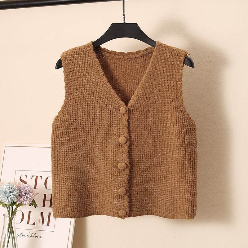 봄과 가을 새로운 v 넥 조끼 여성 겉옷 느슨한 니트 카디건 짧은 디자인 솔리드 컬러 조끼 스웨터