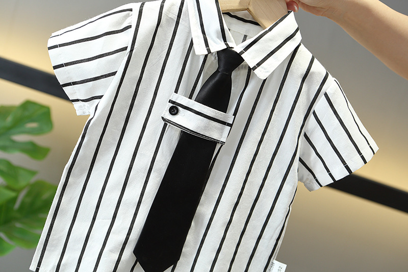 남자들의 여름 세트 새로운 스타일의 아기 여름 옷 아기 아동복 여름 줄무늬 짧은 소매 투피스 트렌디스토어 가기