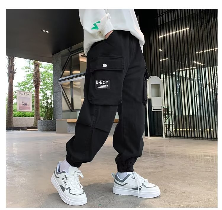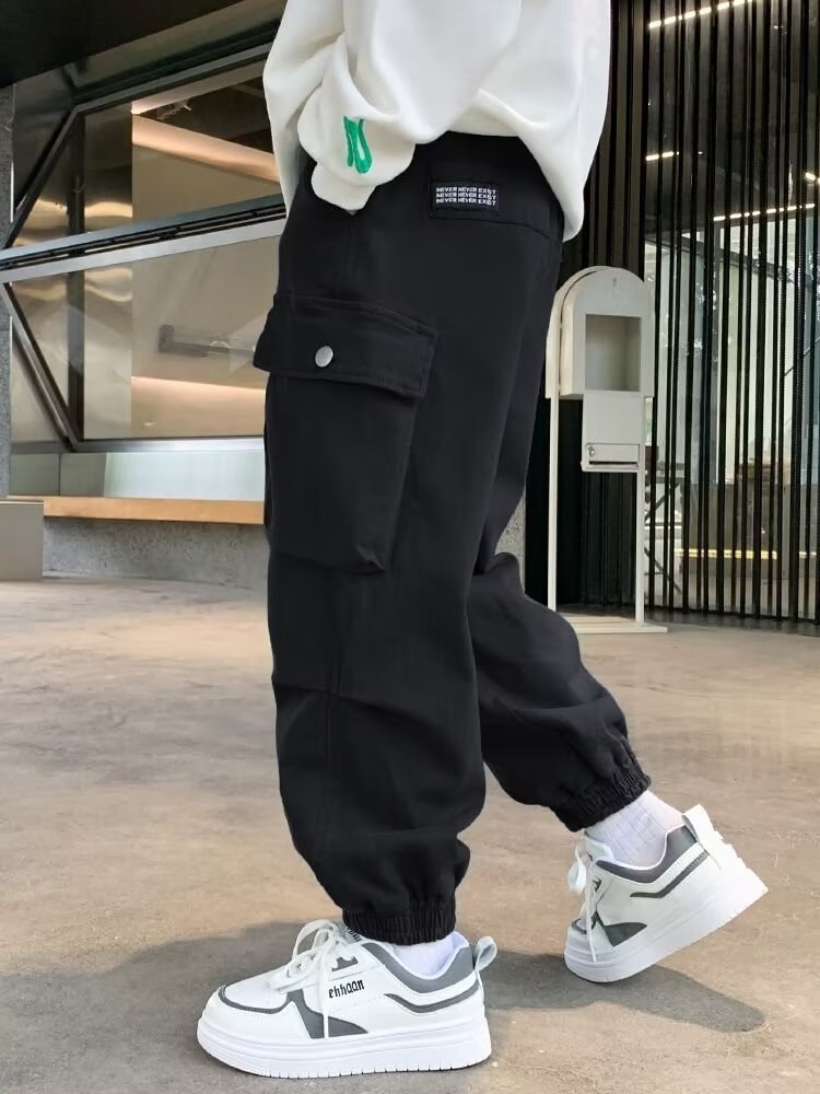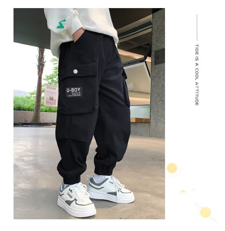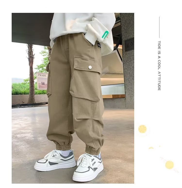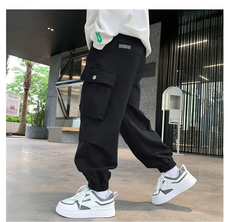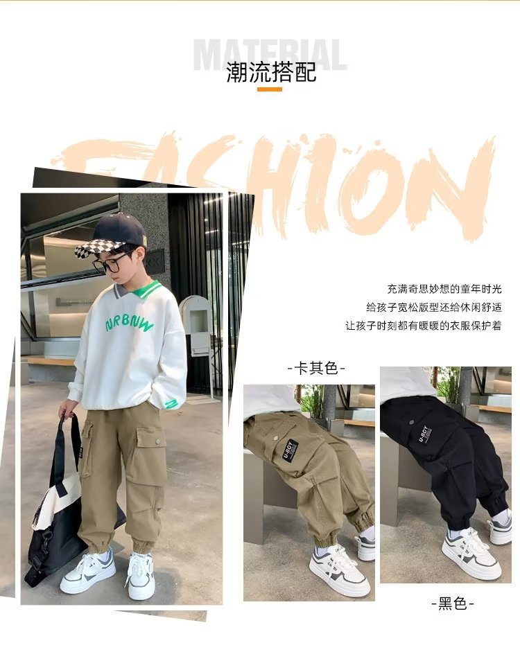 아동복 소년 가을 바지 2024 새로운 도착 중대형 어린이 봄과 가을 소년의 가을 작업복 바지 거리 튀김 스포츠