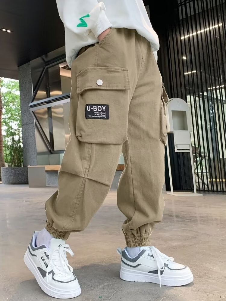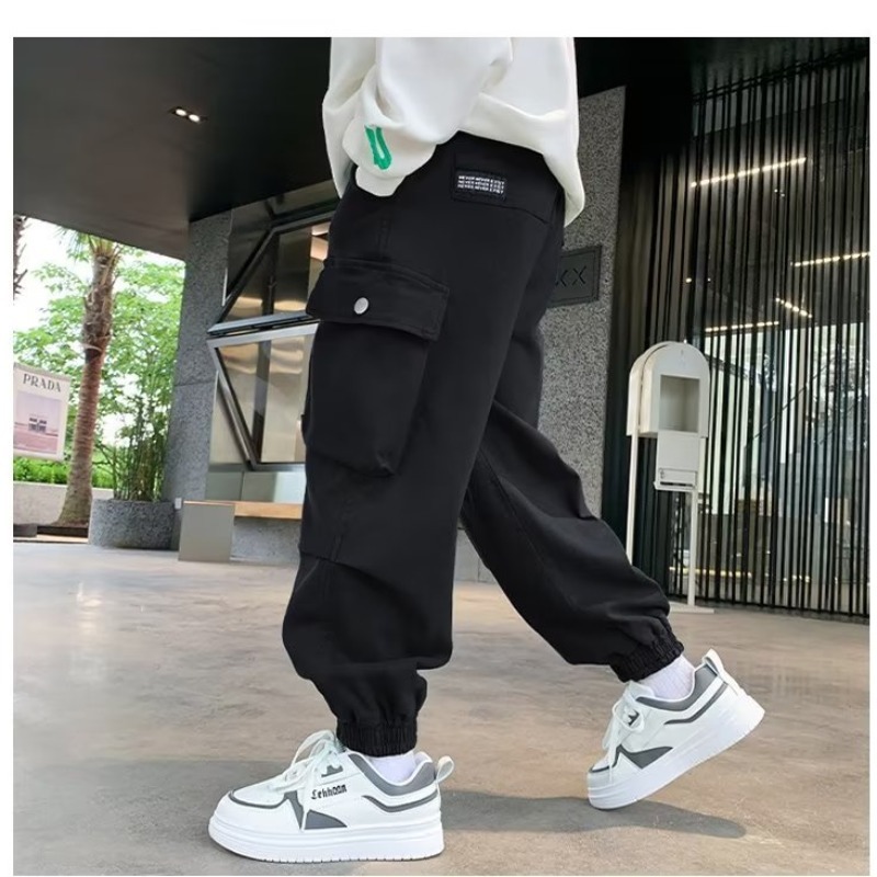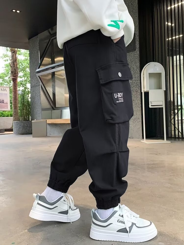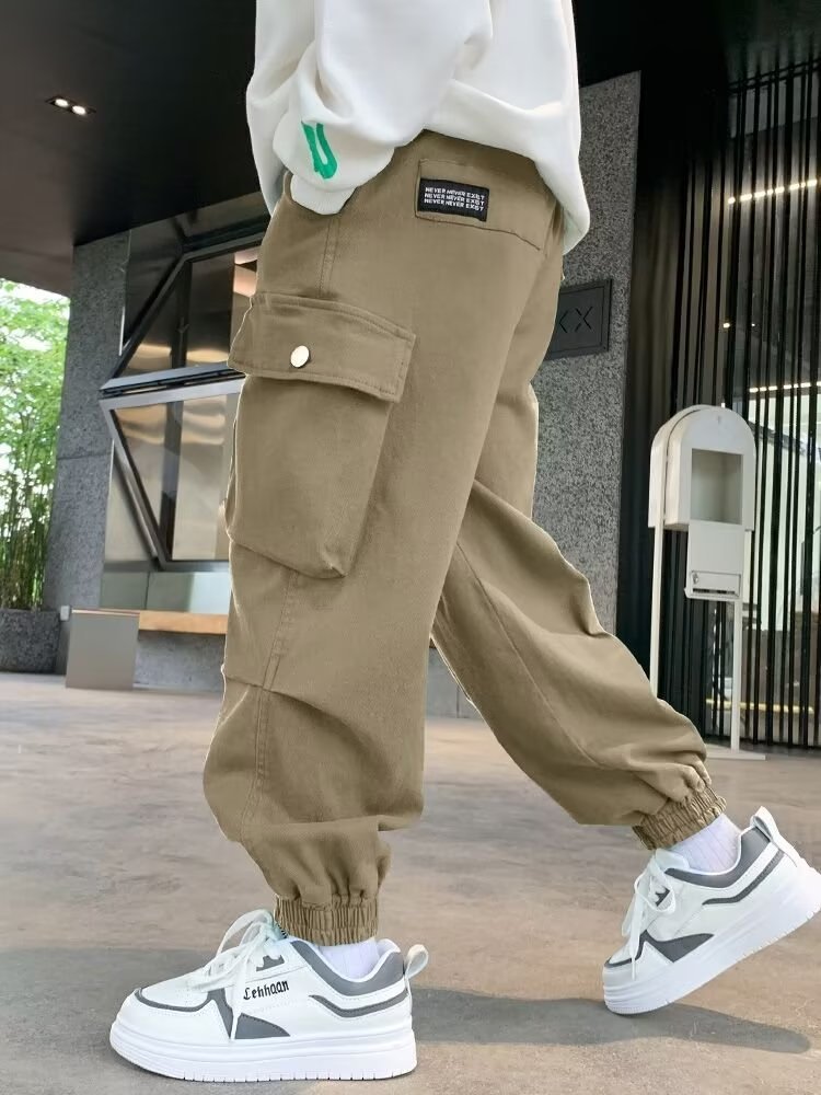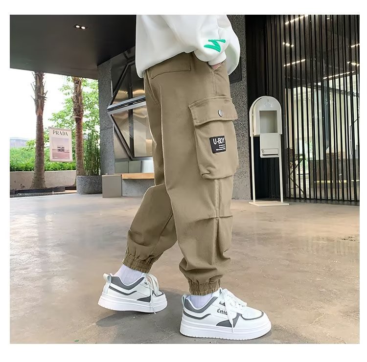 아동복 소년 가을 바지 2024 새로운 도착 중대형 어린이 봄과 가을 소년의 가을 작업복 바지 거리 튀김 스포츠