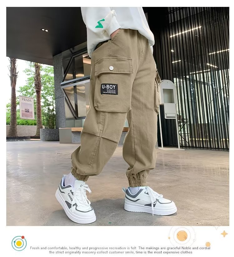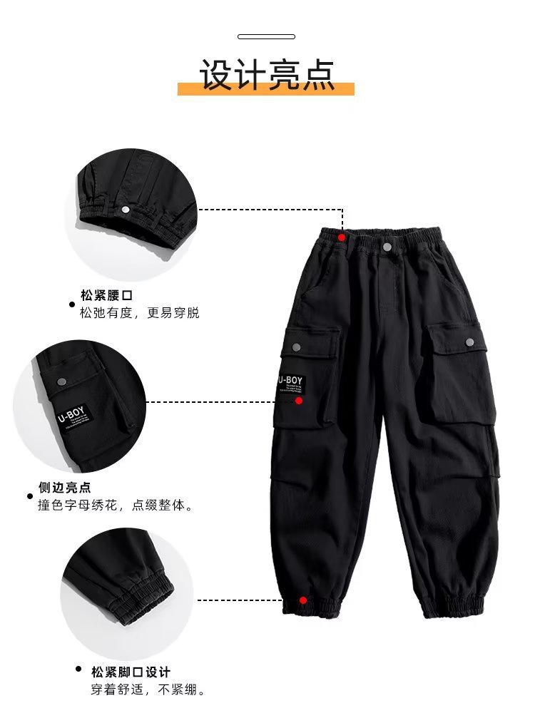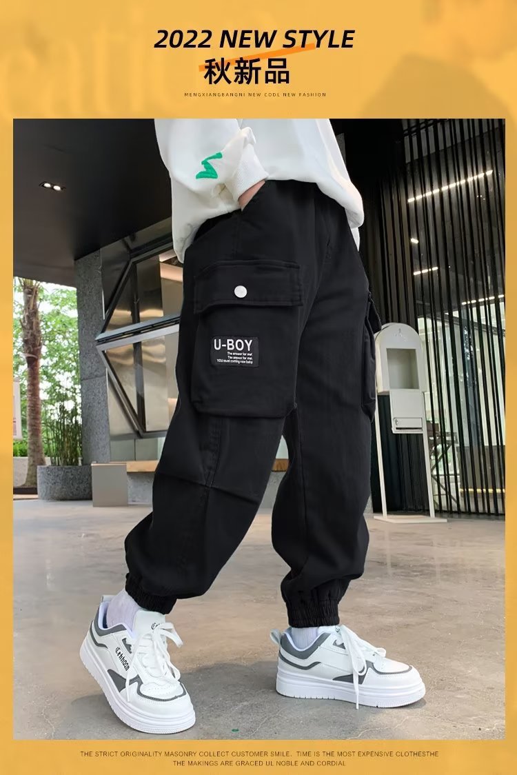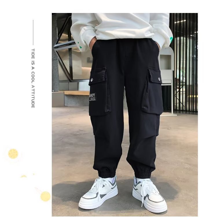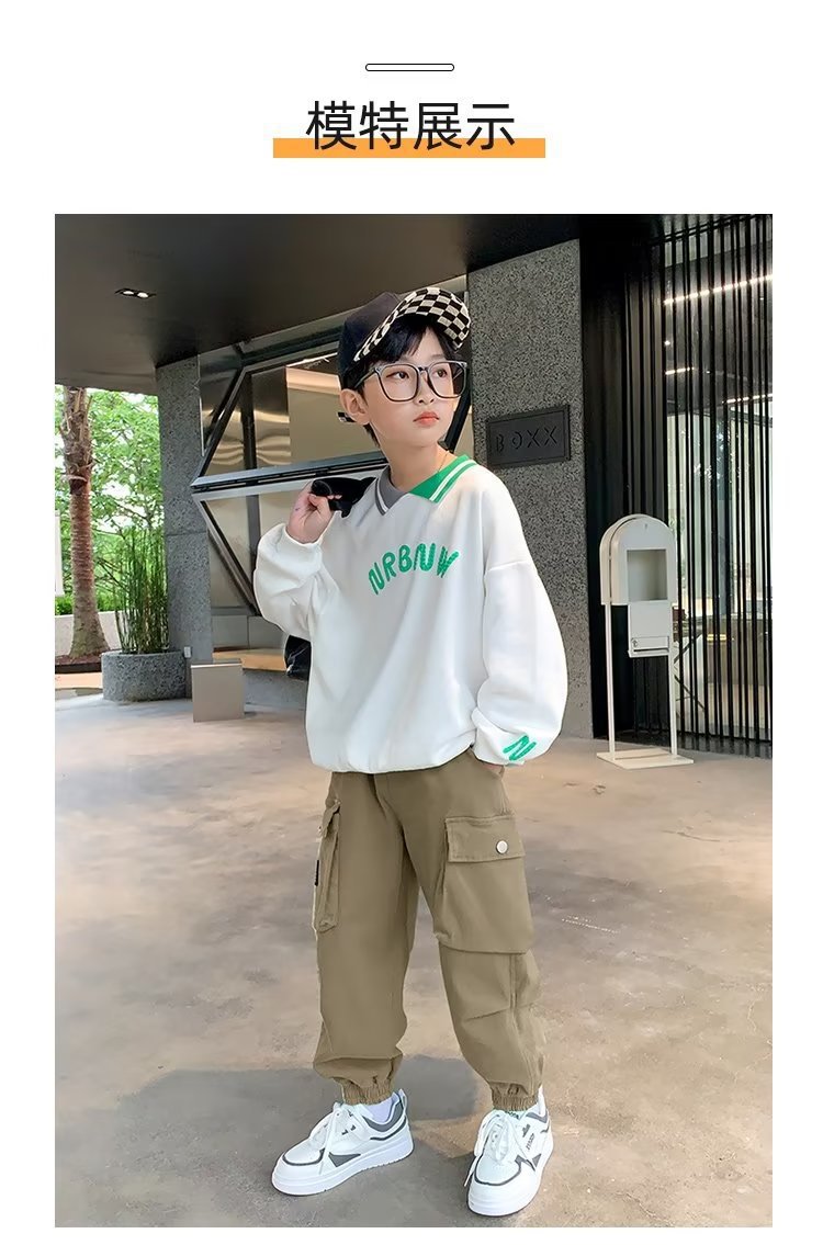 아동복 소년 가을 바지 2024 새로운 도착 중대형 어린이 봄과 가을 소년의 가을 작업복 바지 거리 튀김 스포츠스토어 가기