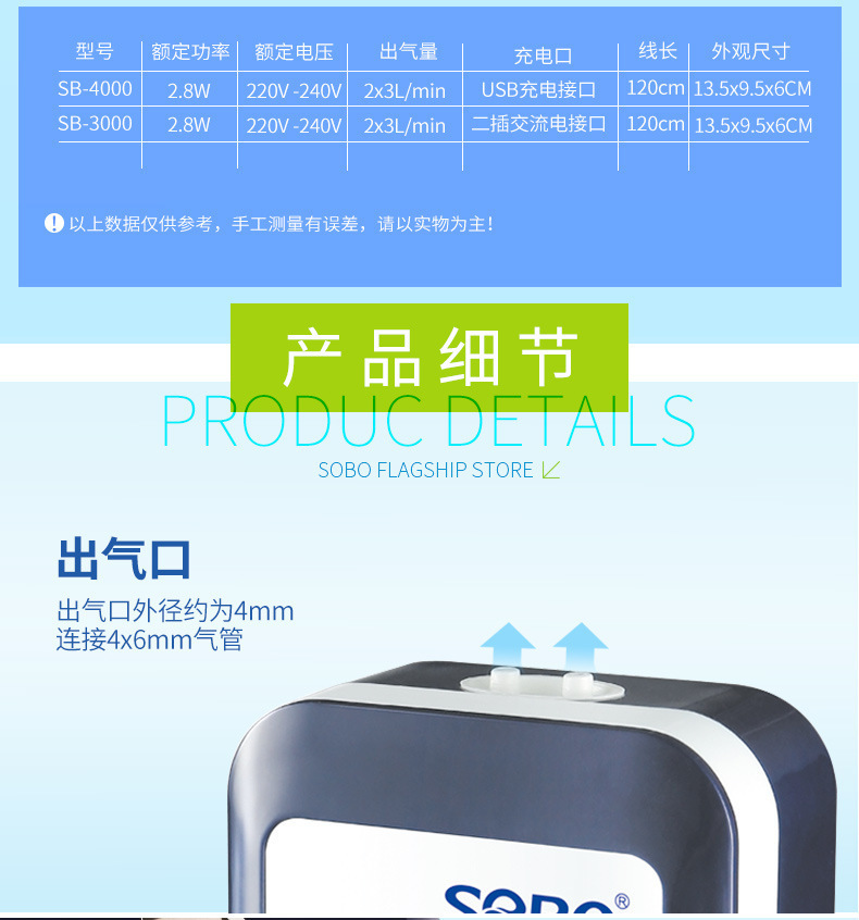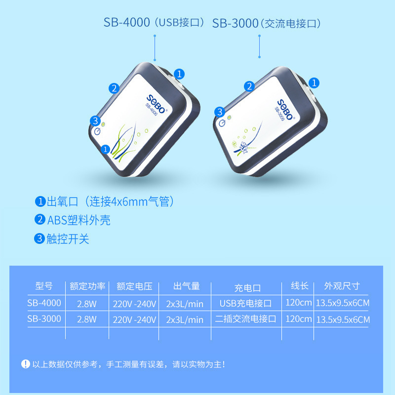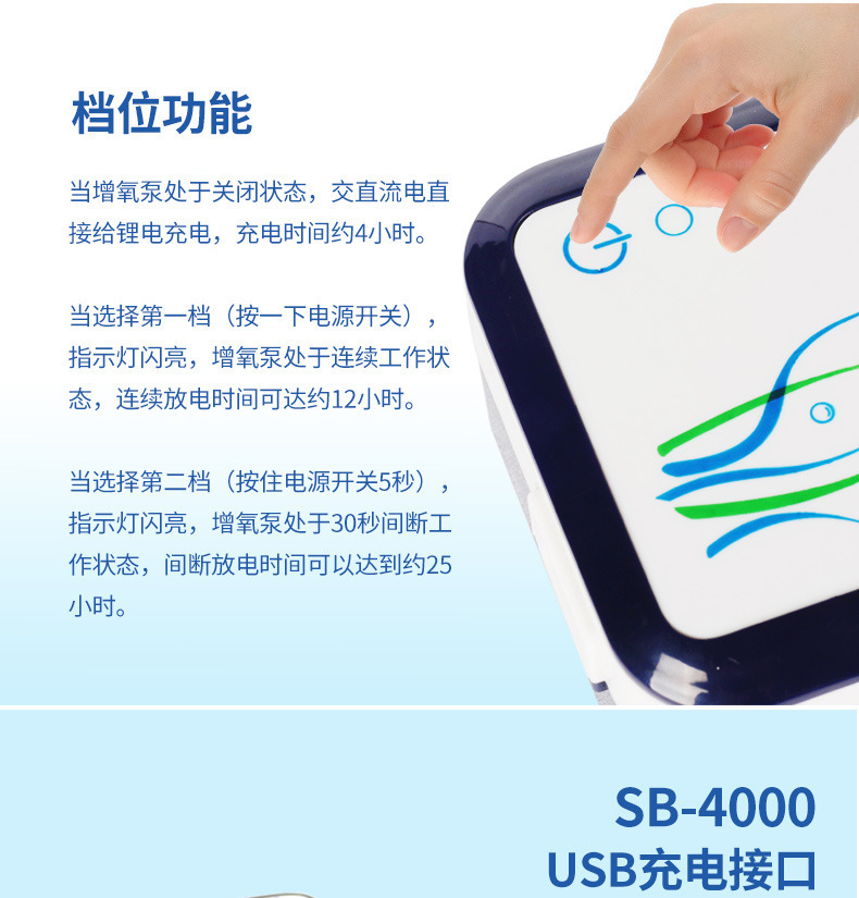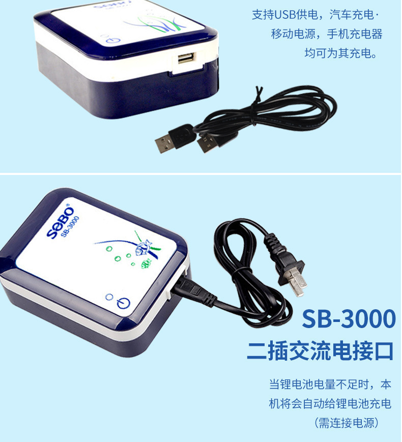 물고기 탱크 수족관 산소 펌프 배터리 충전 이중 목적 산소 펌프 AC/DC 이중 목적 산소 펌프 SB4000스토어 가기