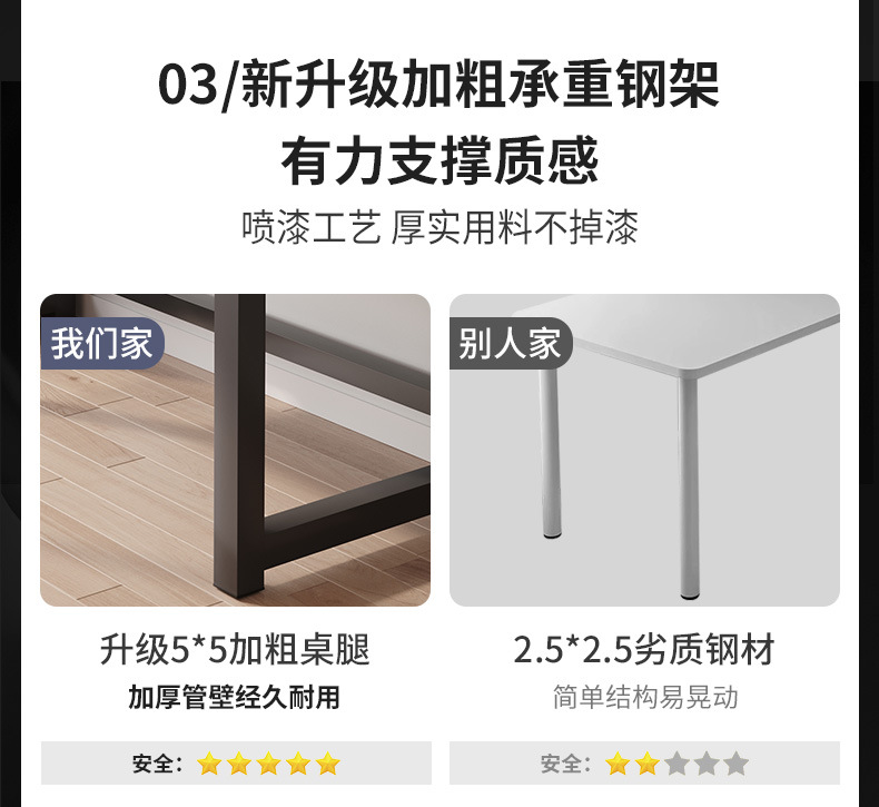• [업그레이드된 굵은 50MM 테이블 다리] 심플한 블랙 + 화이트 프레임
