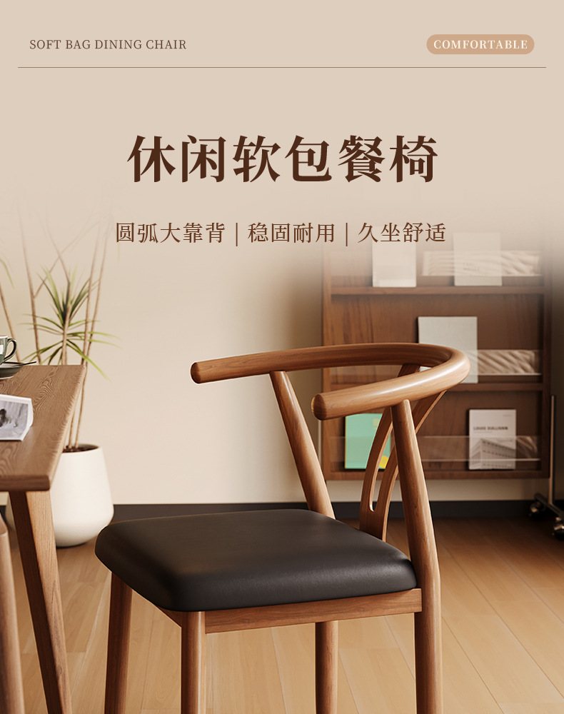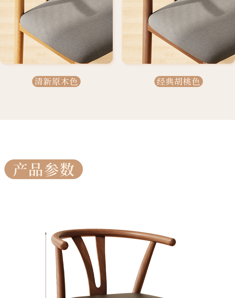 • 라텍스 모델 [수출 업그레이드 및 강화] 목재 색상 + 갈색 면 및 린넨/혼 의자