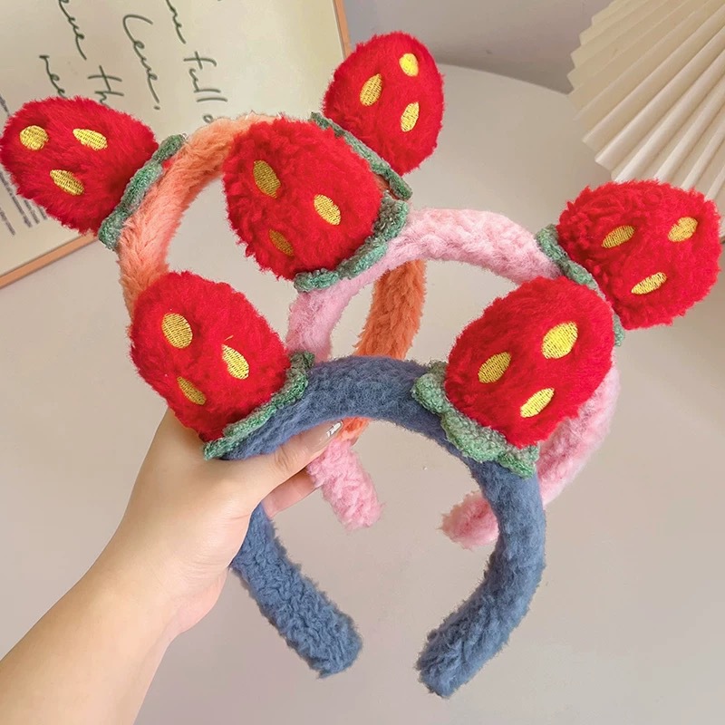 인터넷 연예인 소녀의 귀여운 3 차원 딸기 헤어 밴드 달콤한 모리 머리띠 워시 얼굴 메이크업 압력 헤어 밴드 한국 헤드웨어 패션스토어 가기