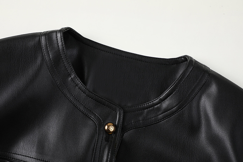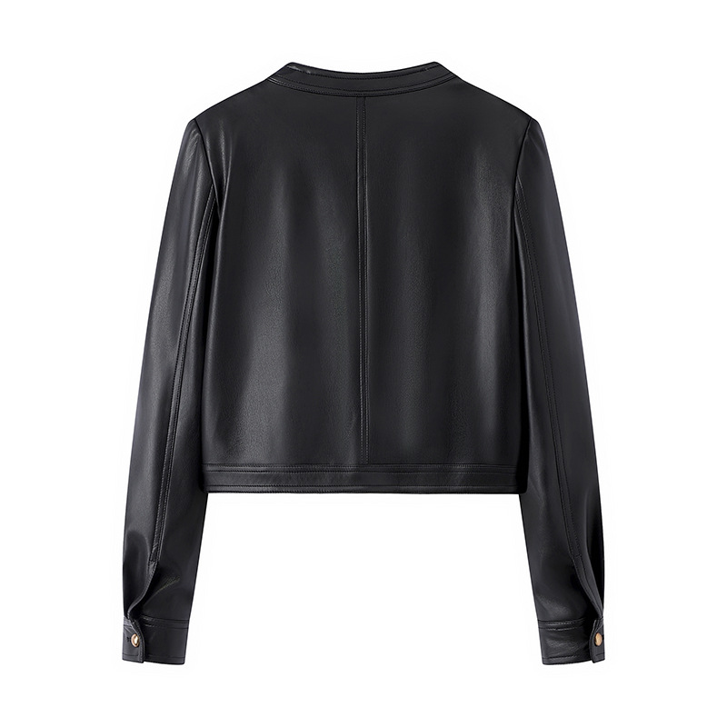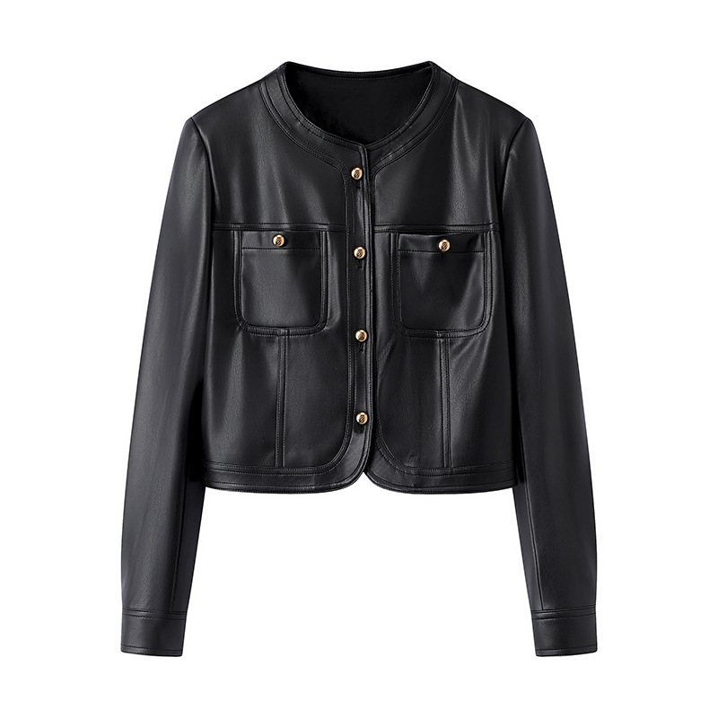 짧은 라운드 넥 가죽 여성 2025 봄 새로운 슬림 룩 작은 쿨 사 스타일 오토바이 푸 코트 P851070100