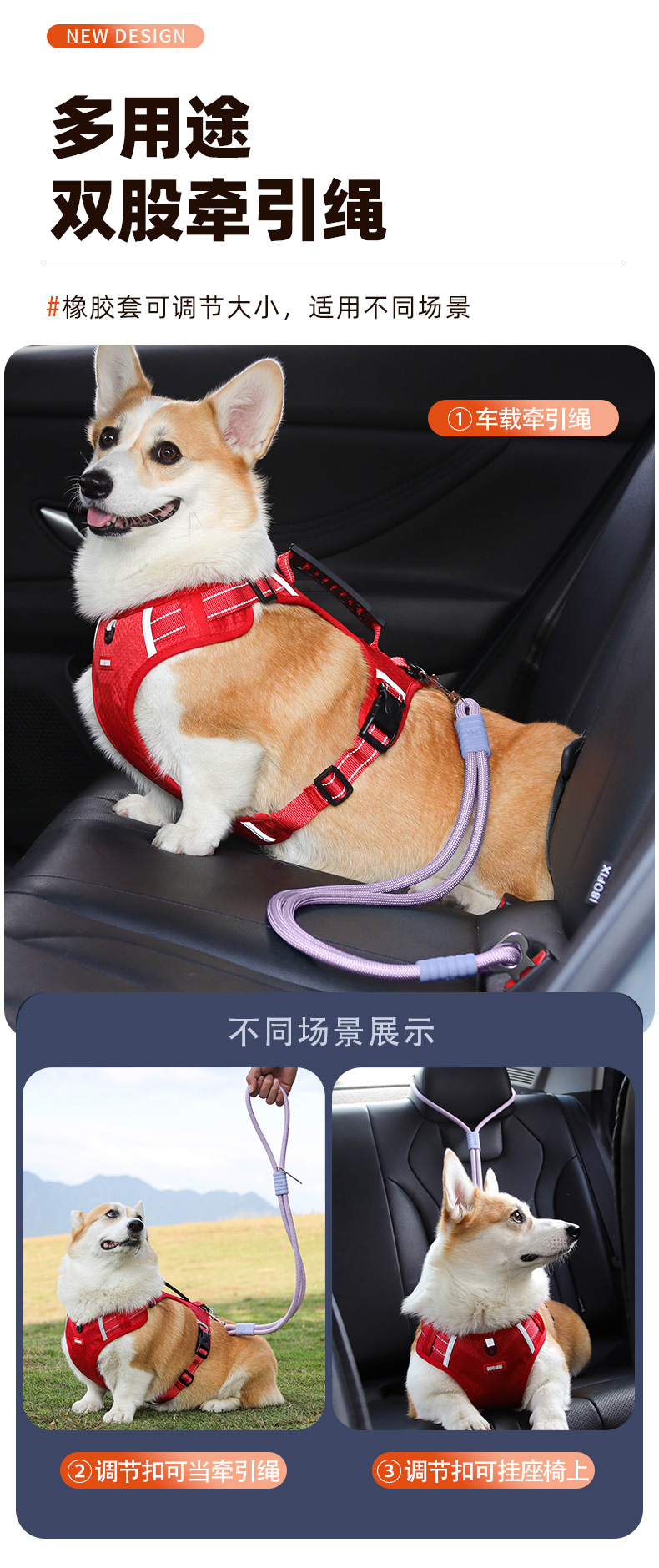 새로운 개 가죽 끈 자동차 나일론 반사 라운드 로프 폭발 방지 야외 애완 동물 중소형 개 가죽 끈