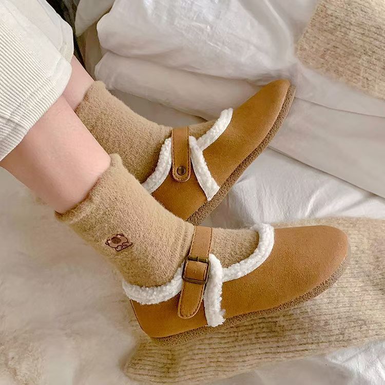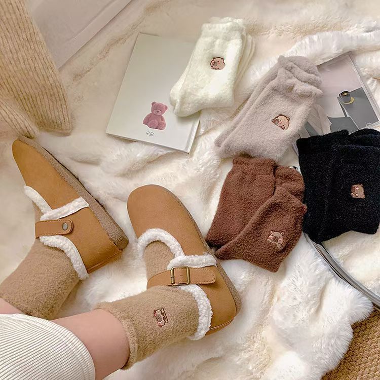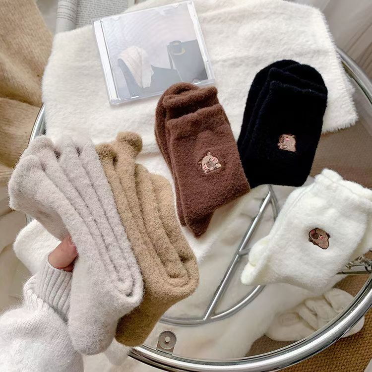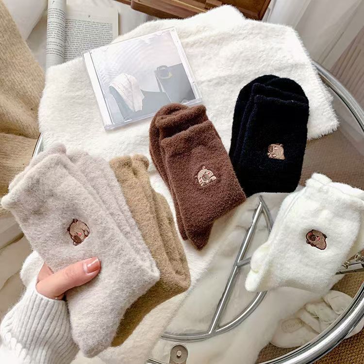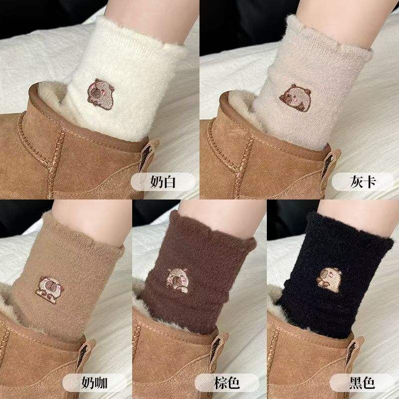 두꺼운 Cabibala Capybara 바닥의 겨울 가을과 겨울 기모 여성을위한 양말 따뜻한 만화 스타킹스토어 가기