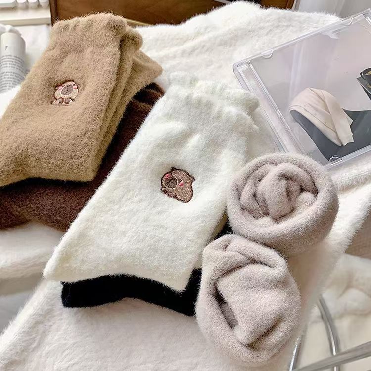 두꺼운 Cabibala Capybara 바닥의 겨울 가을과 겨울 기모 여성을위한 양말 따뜻한 만화 스타킹