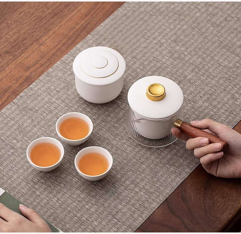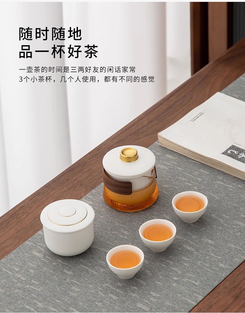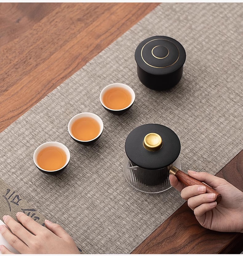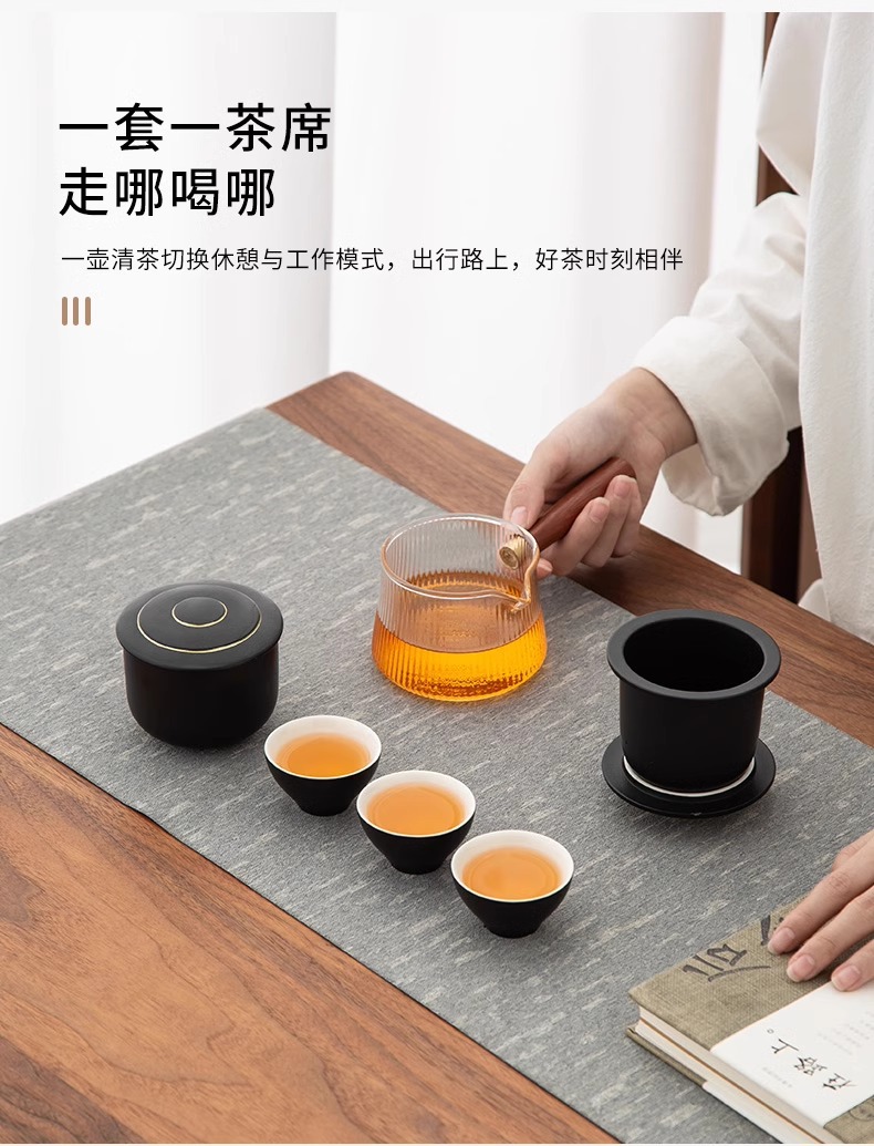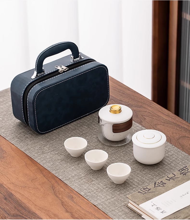 휴대용 야외 여행 차 세트 세트 간단한 오피스 버블 메이커 1 포트 3 컵 자동차 운반 용 보관 가방